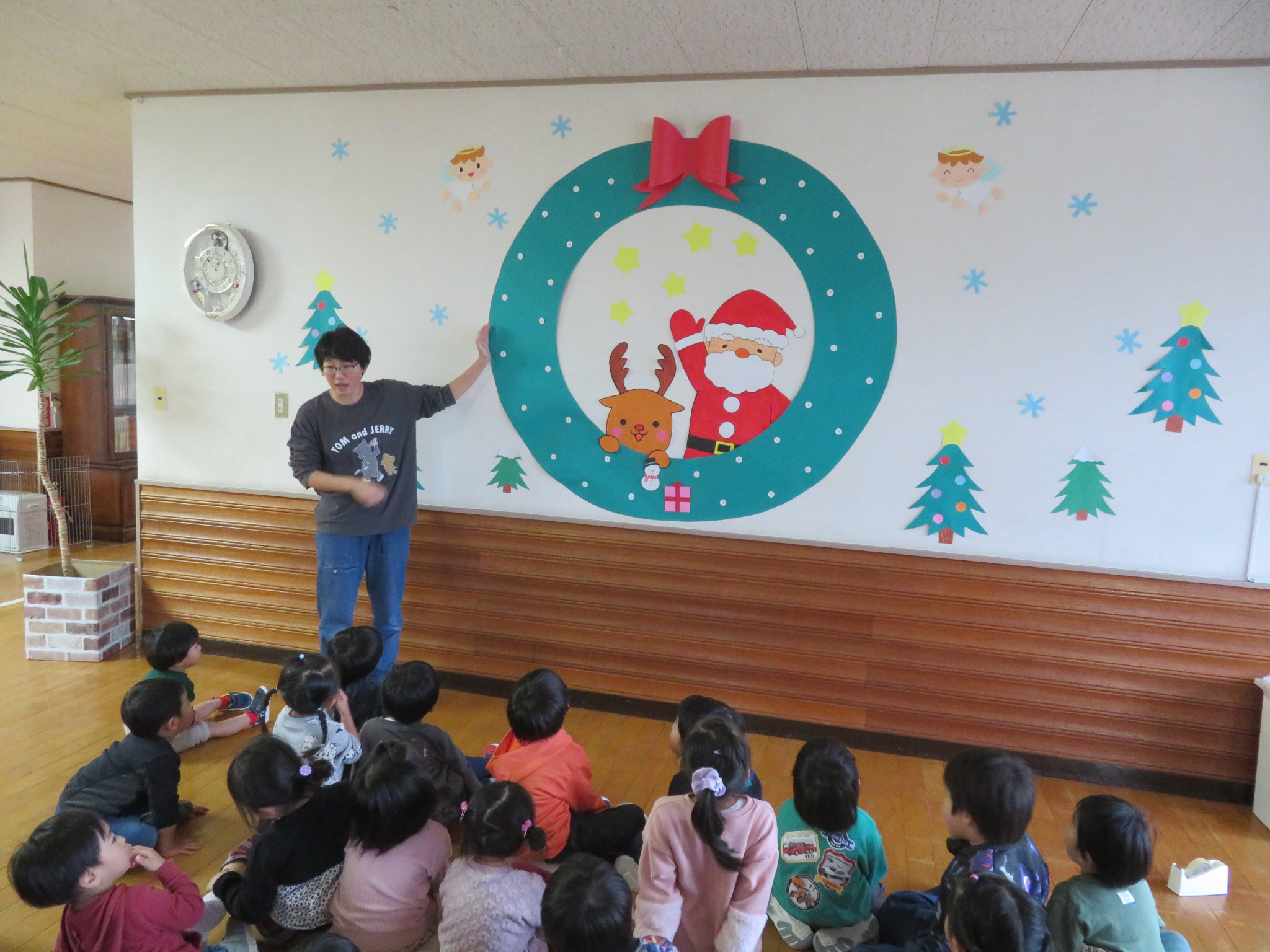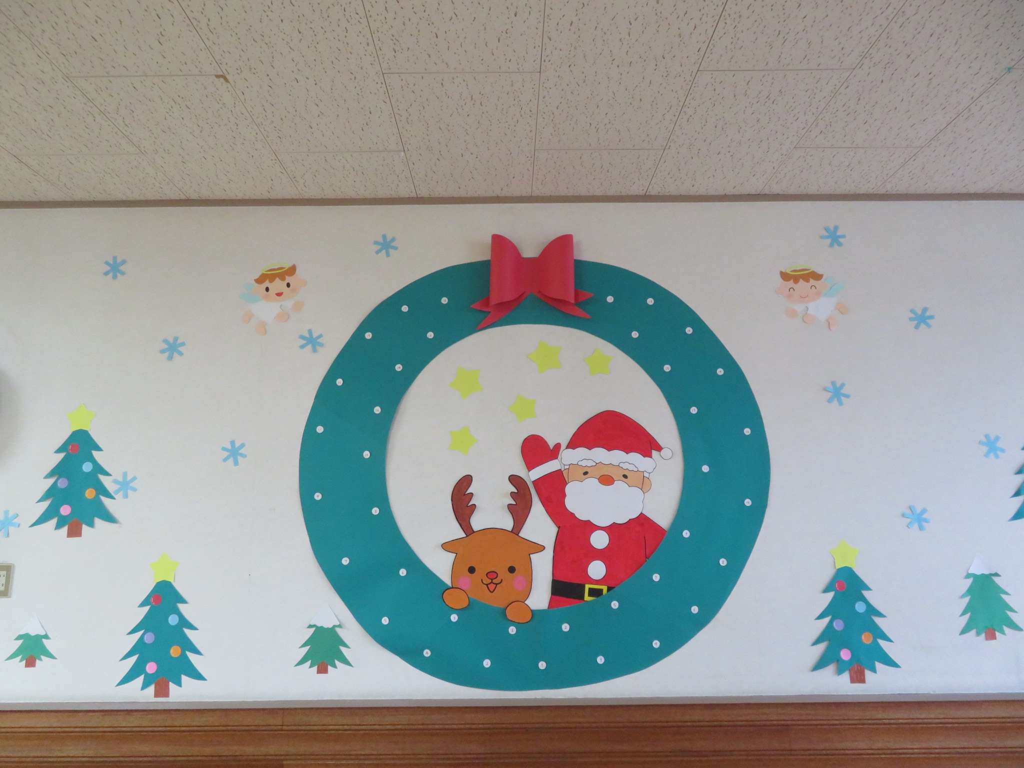このリースに、みんなでかわいく飾りつけをしながら、クリスマス会を楽しみに待ちましょう!(^^)!