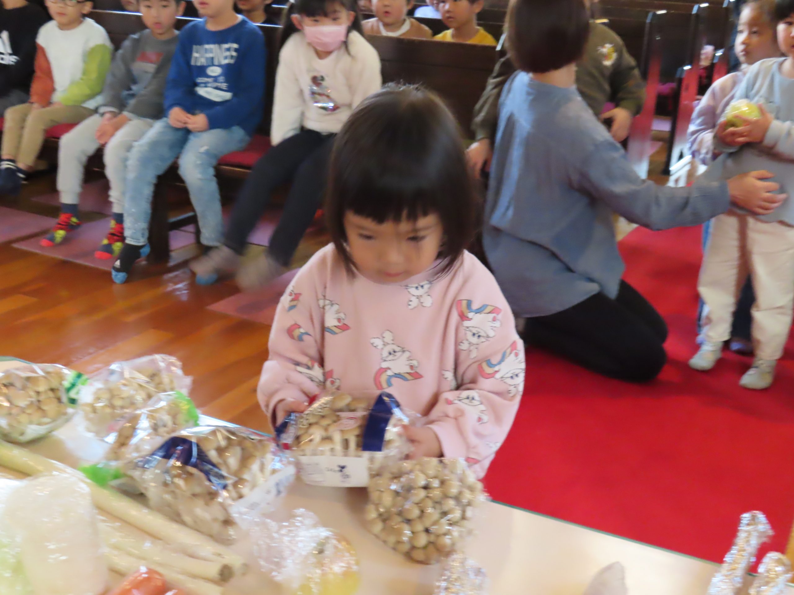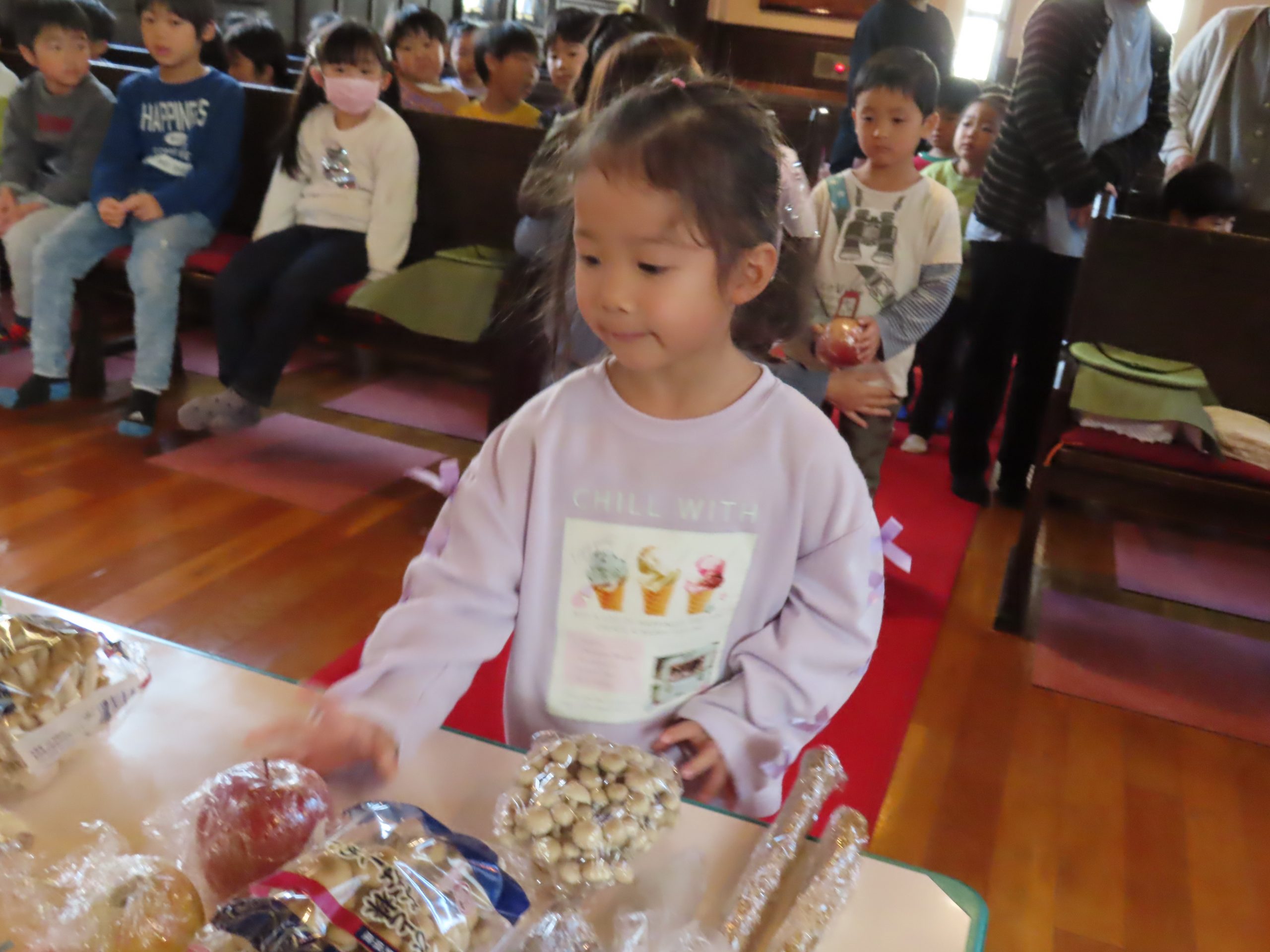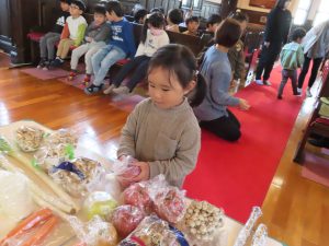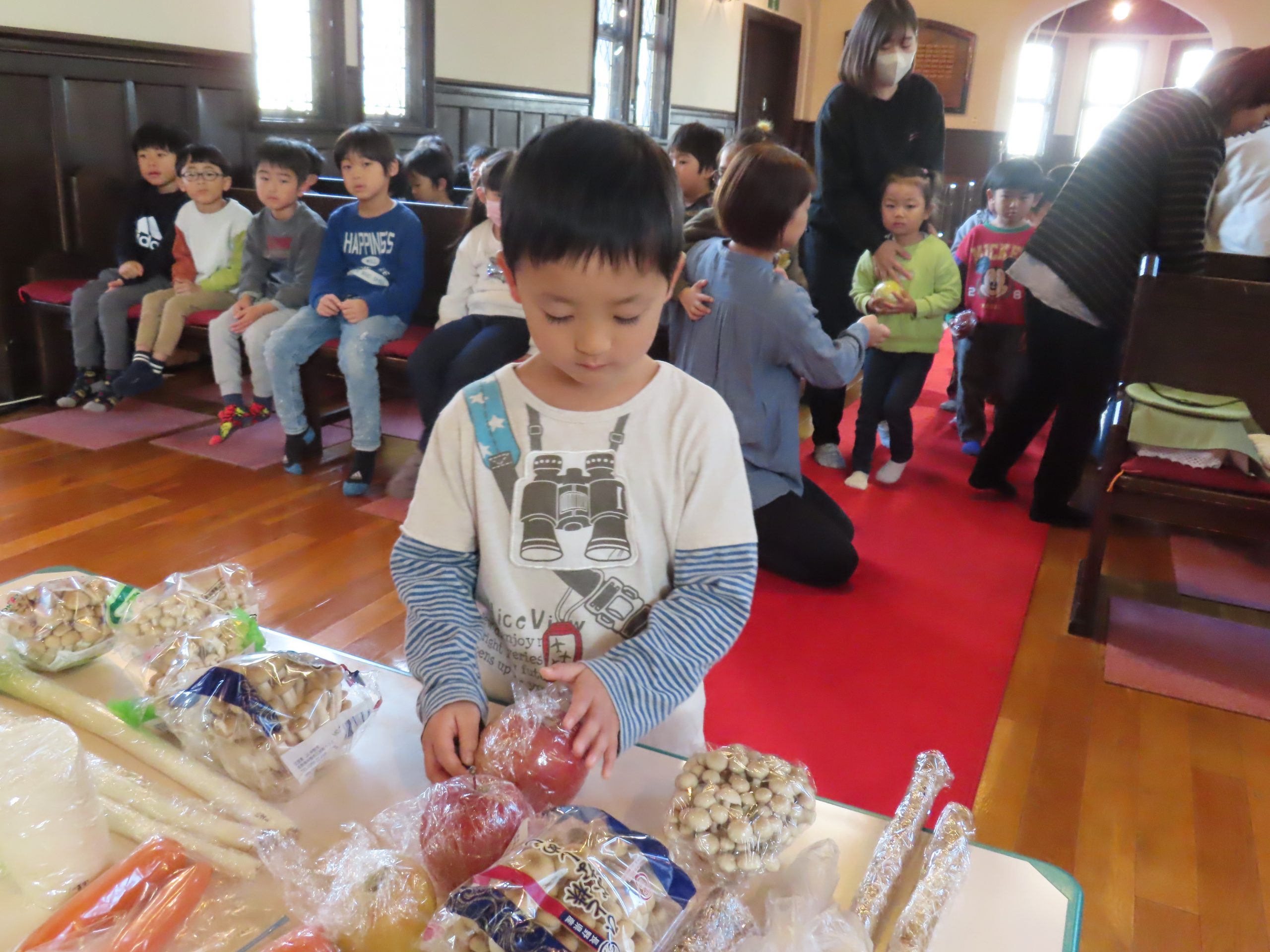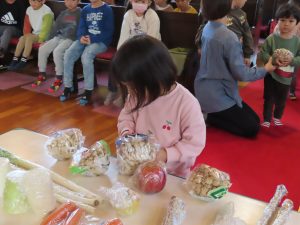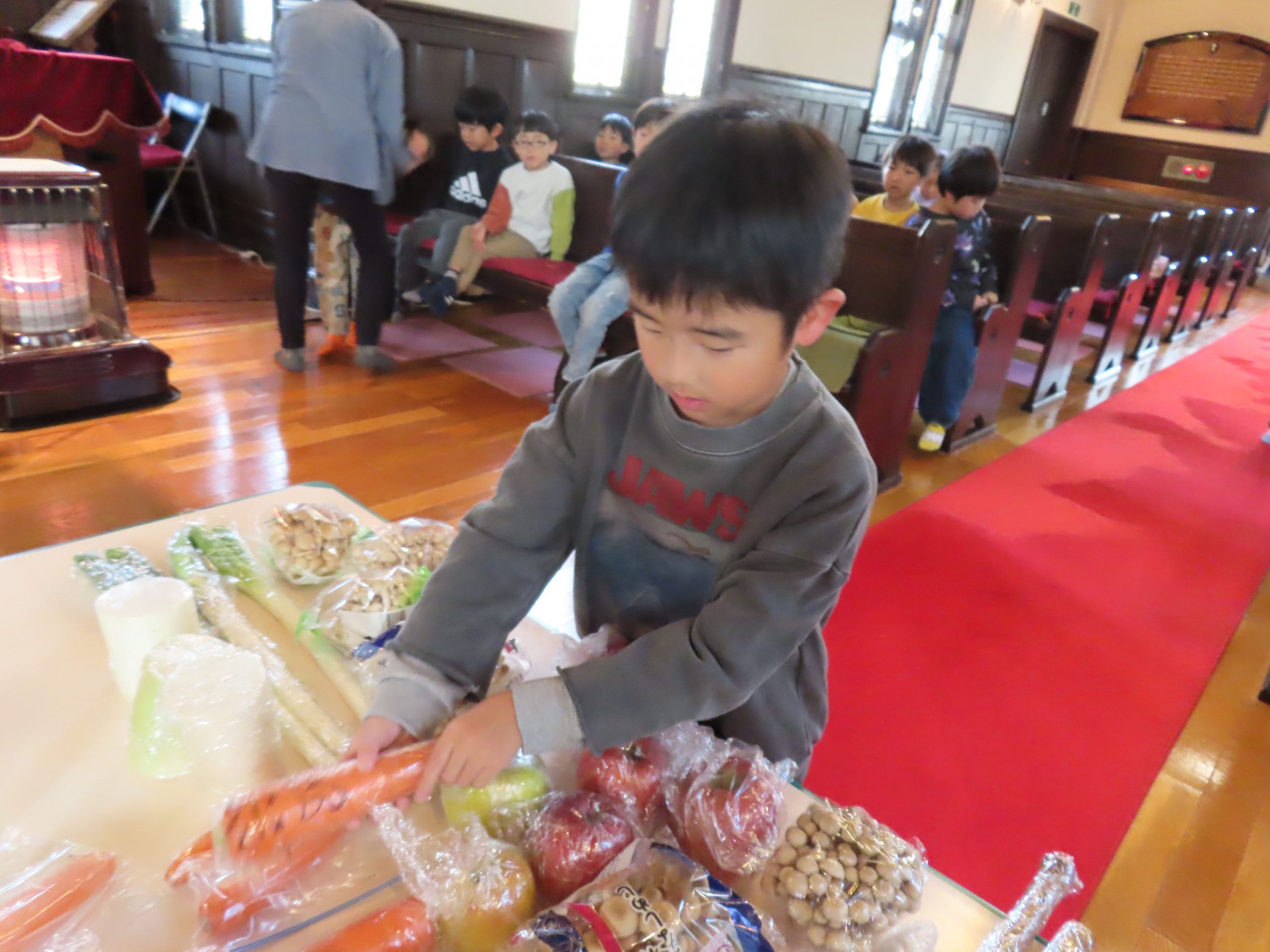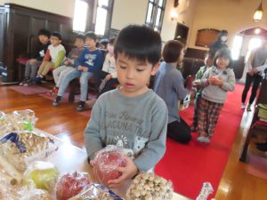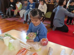 毎日食べているご飯や、たくさんの収穫に『ありがとう』の気持ちを込めてお礼拝をしました。