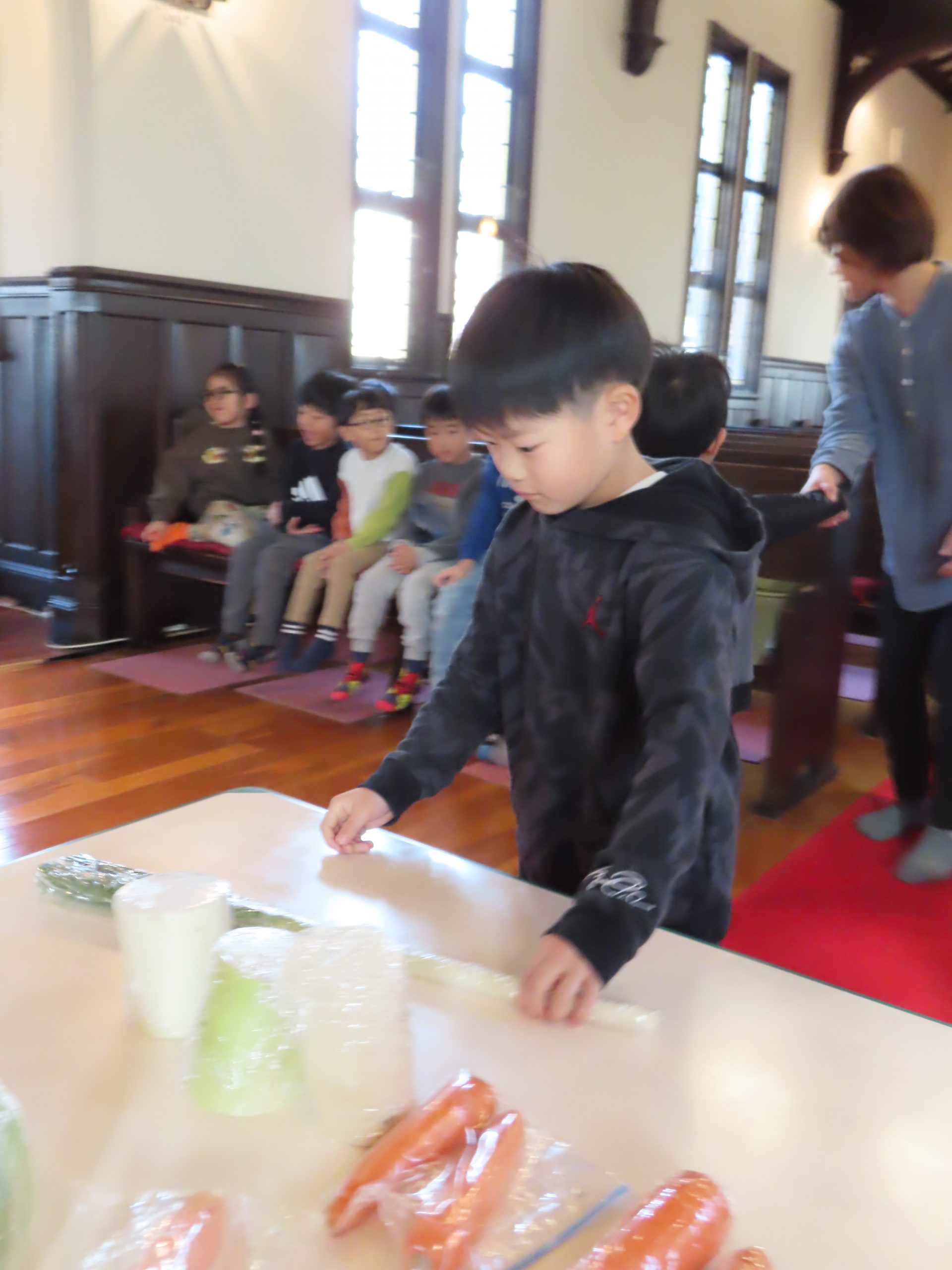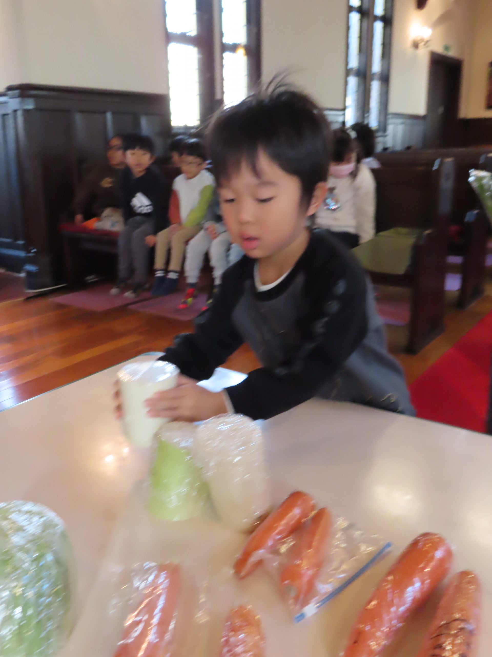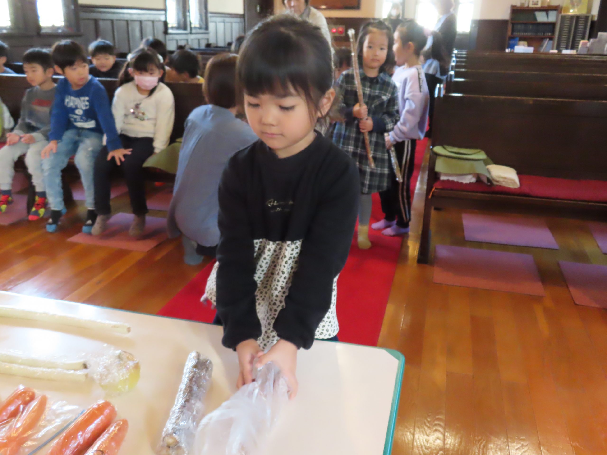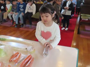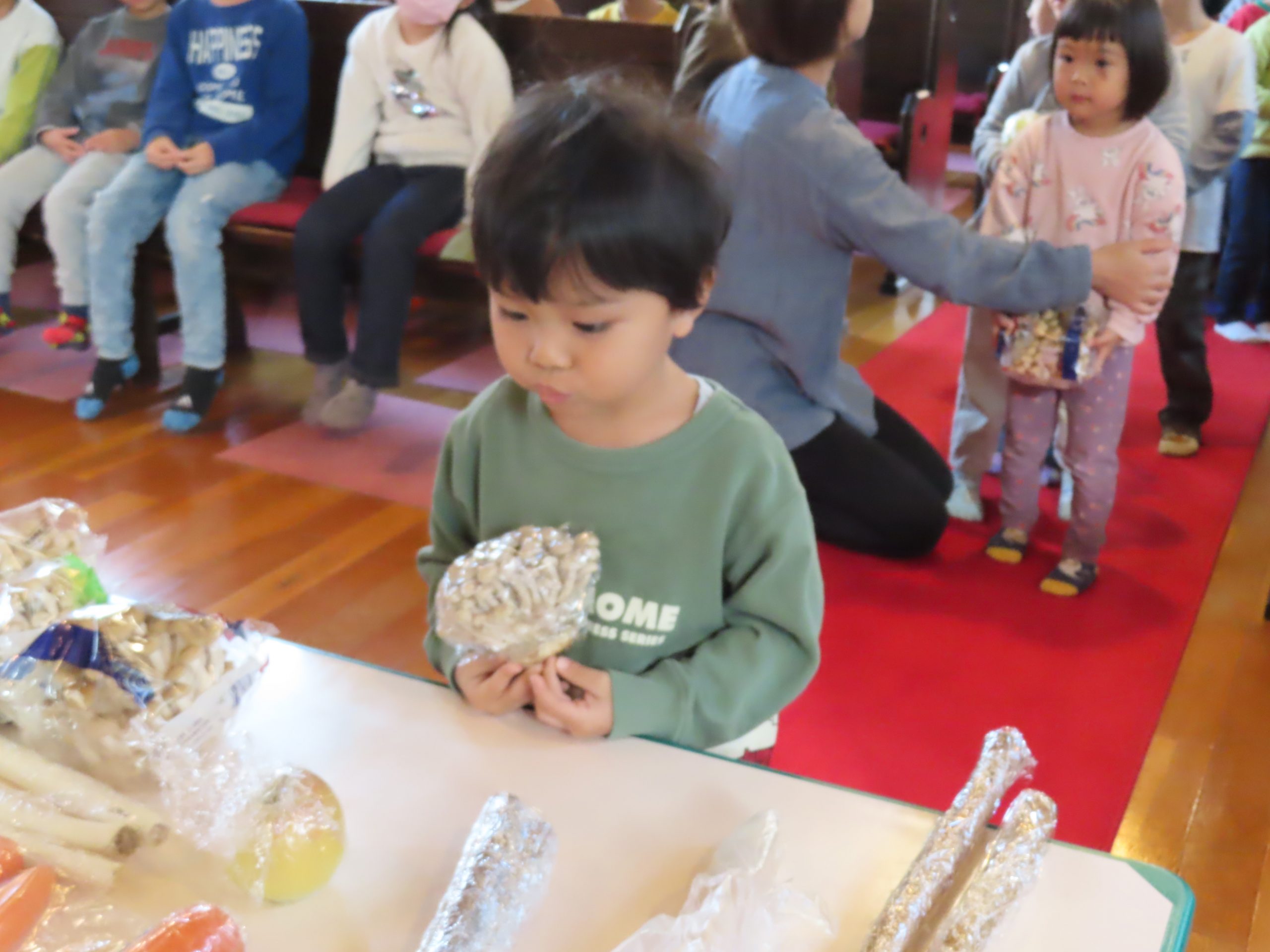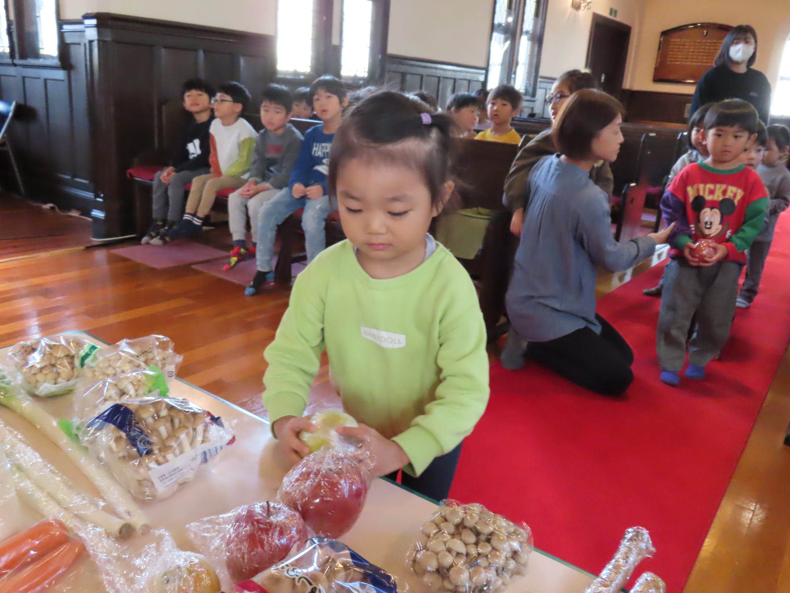 毎日食べているご飯や、たくさんの収穫に『ありがとう』の気持ちを込めてお礼拝をしました。