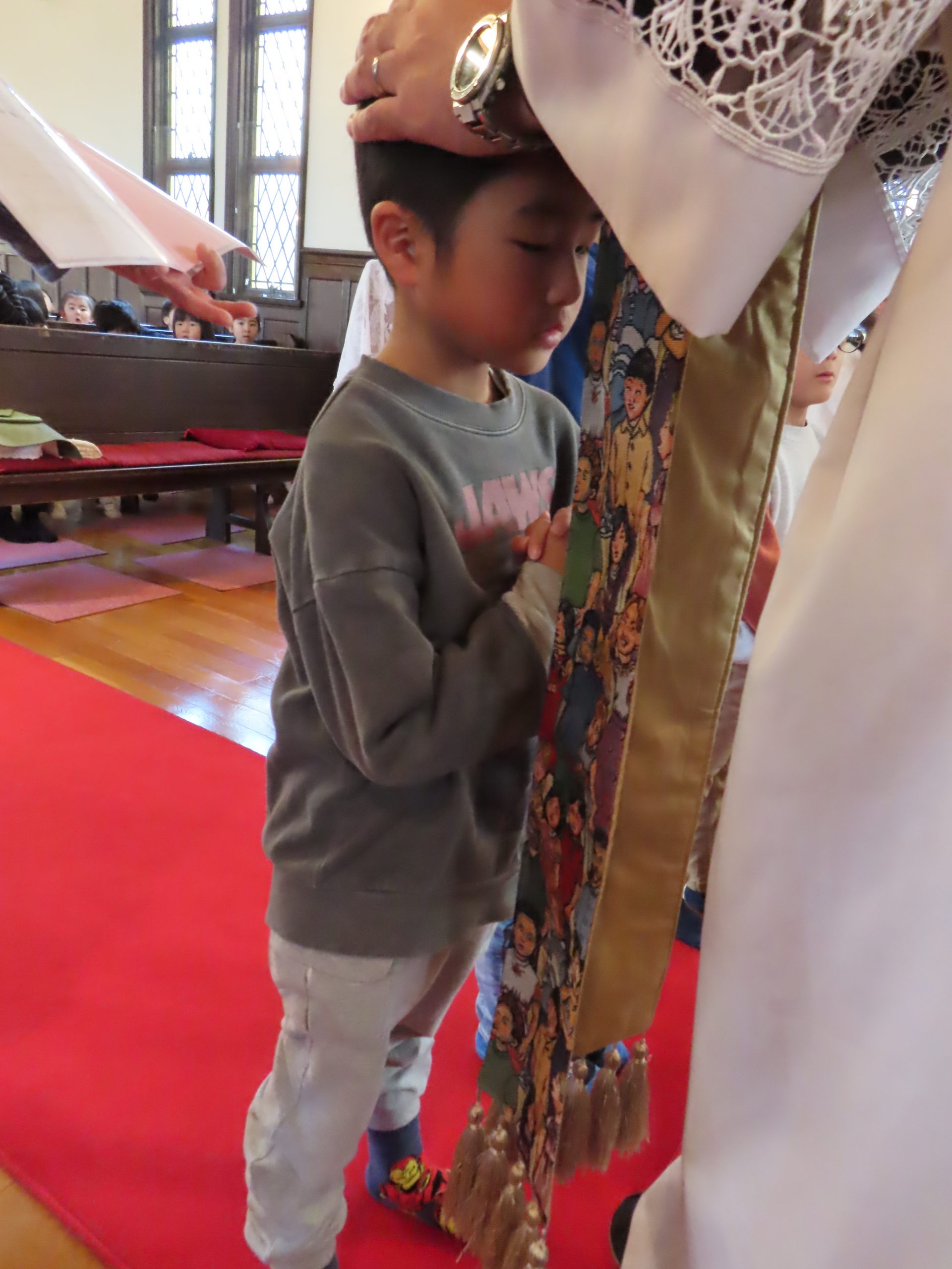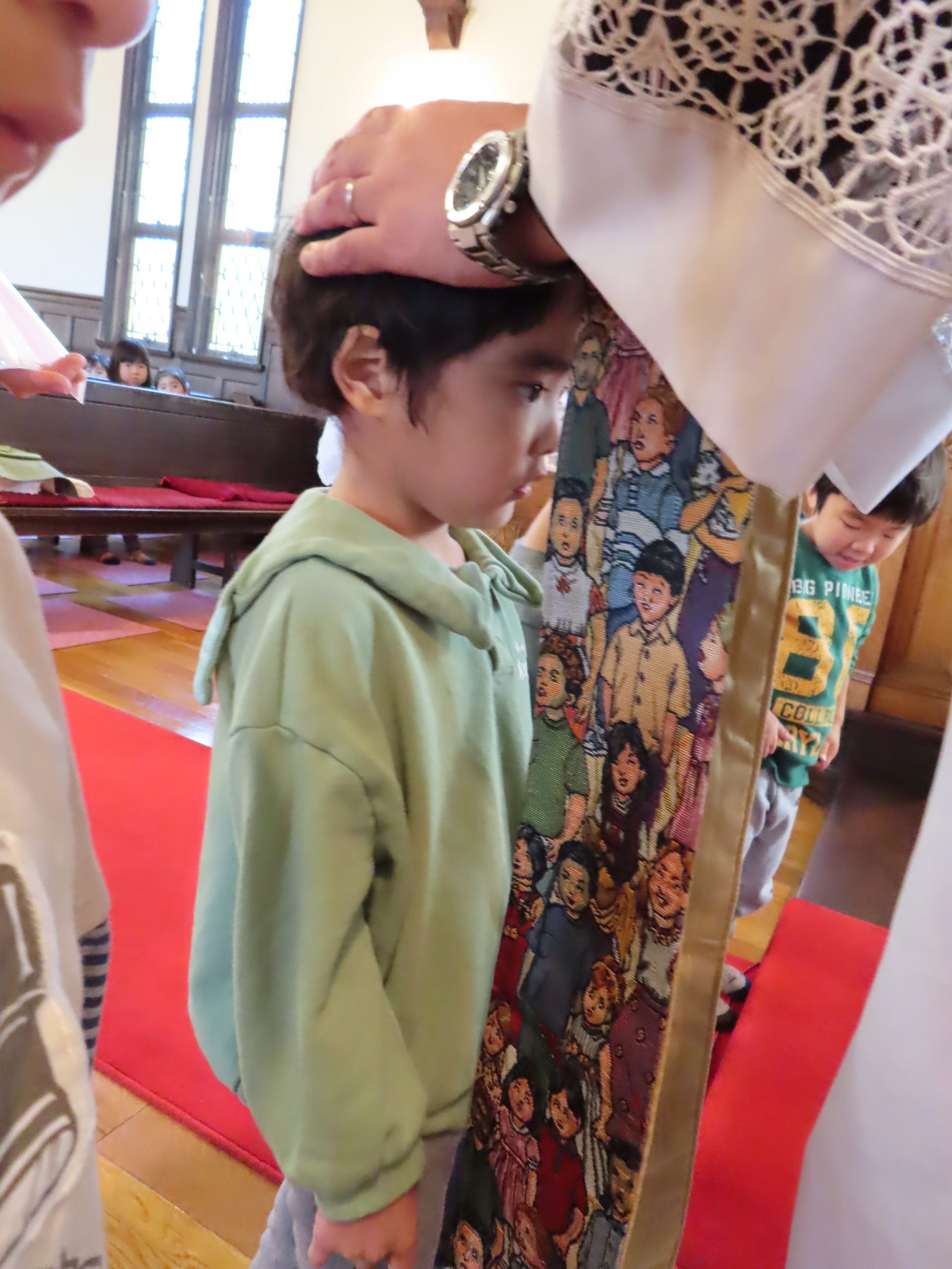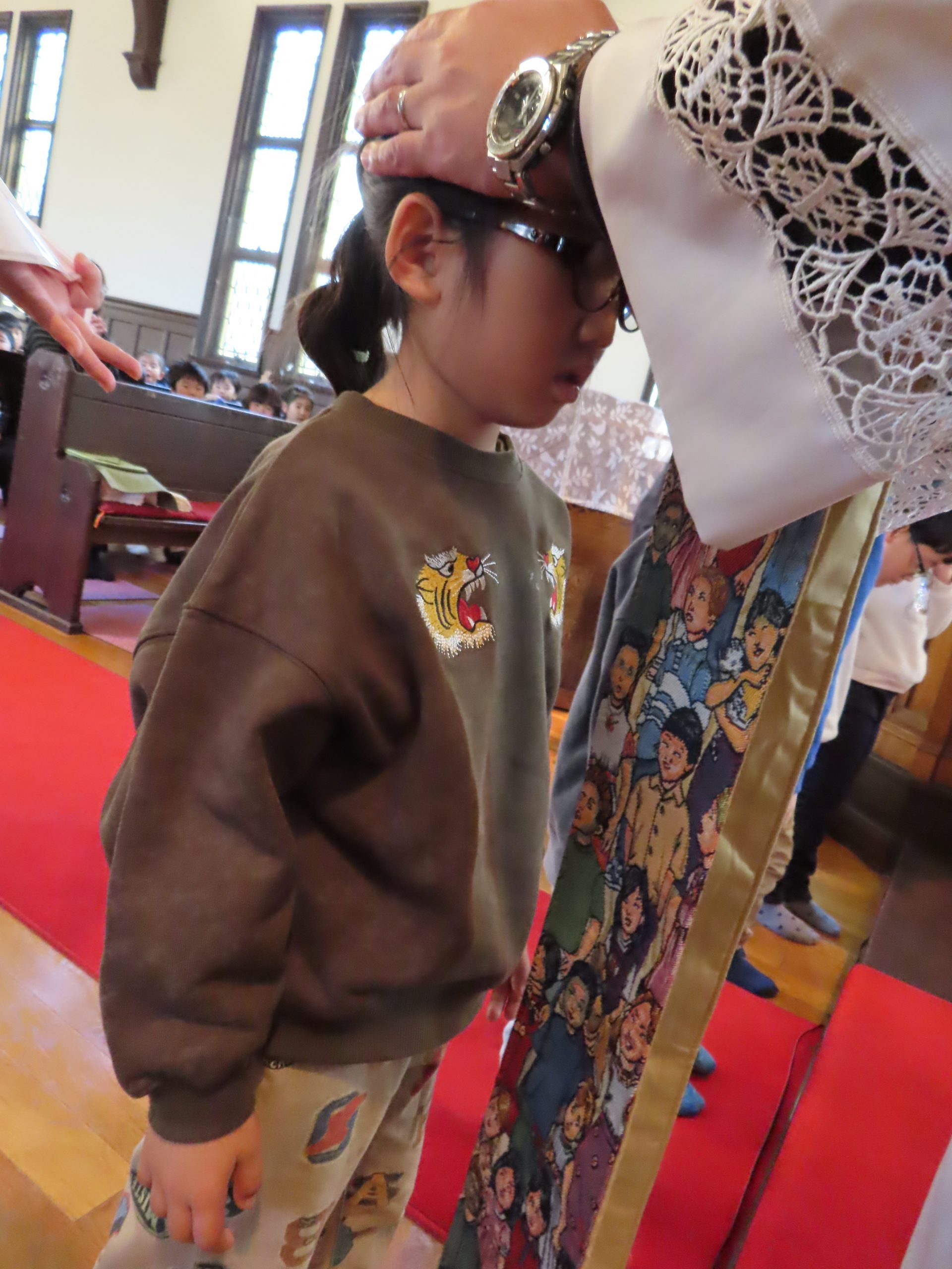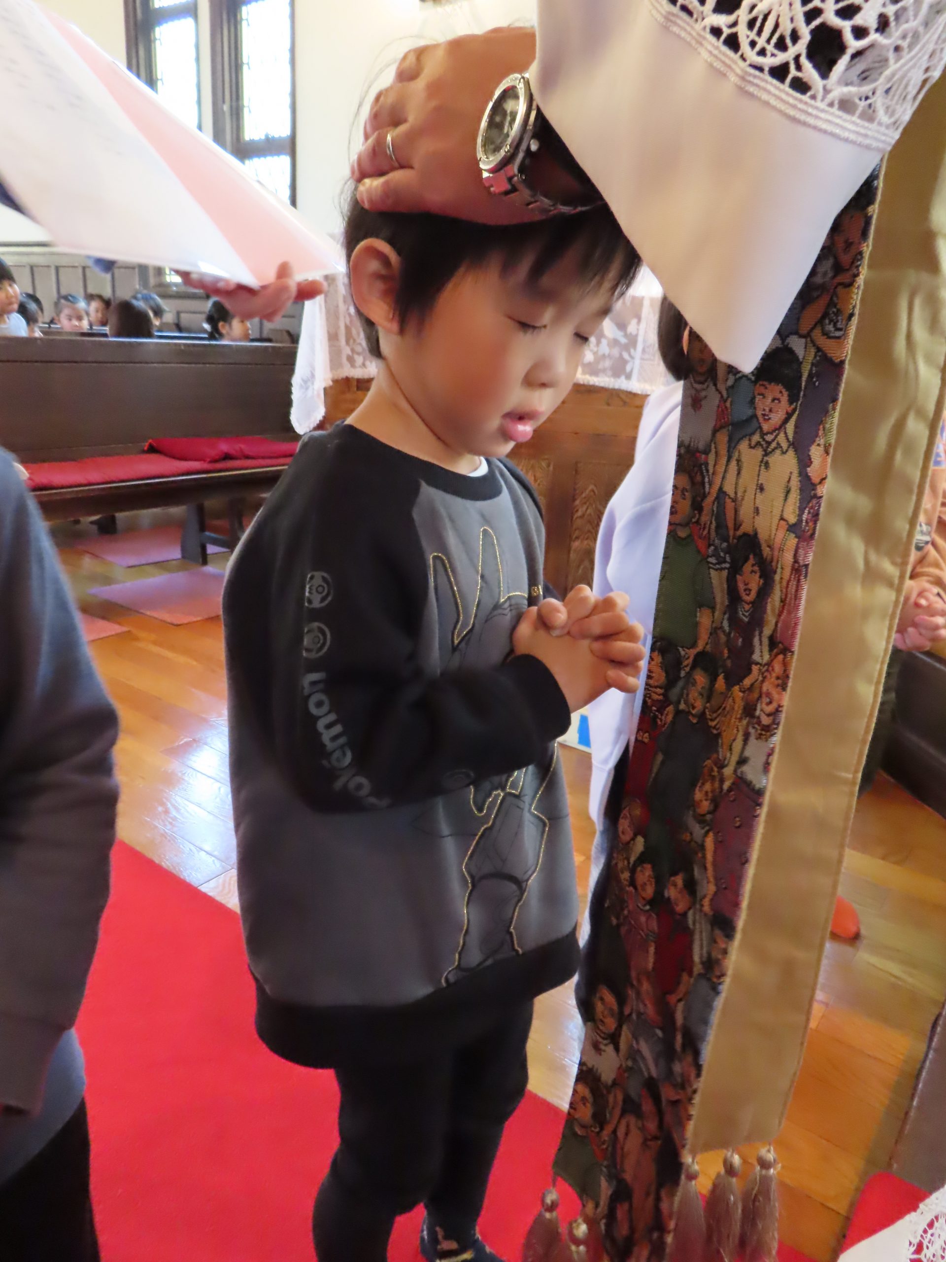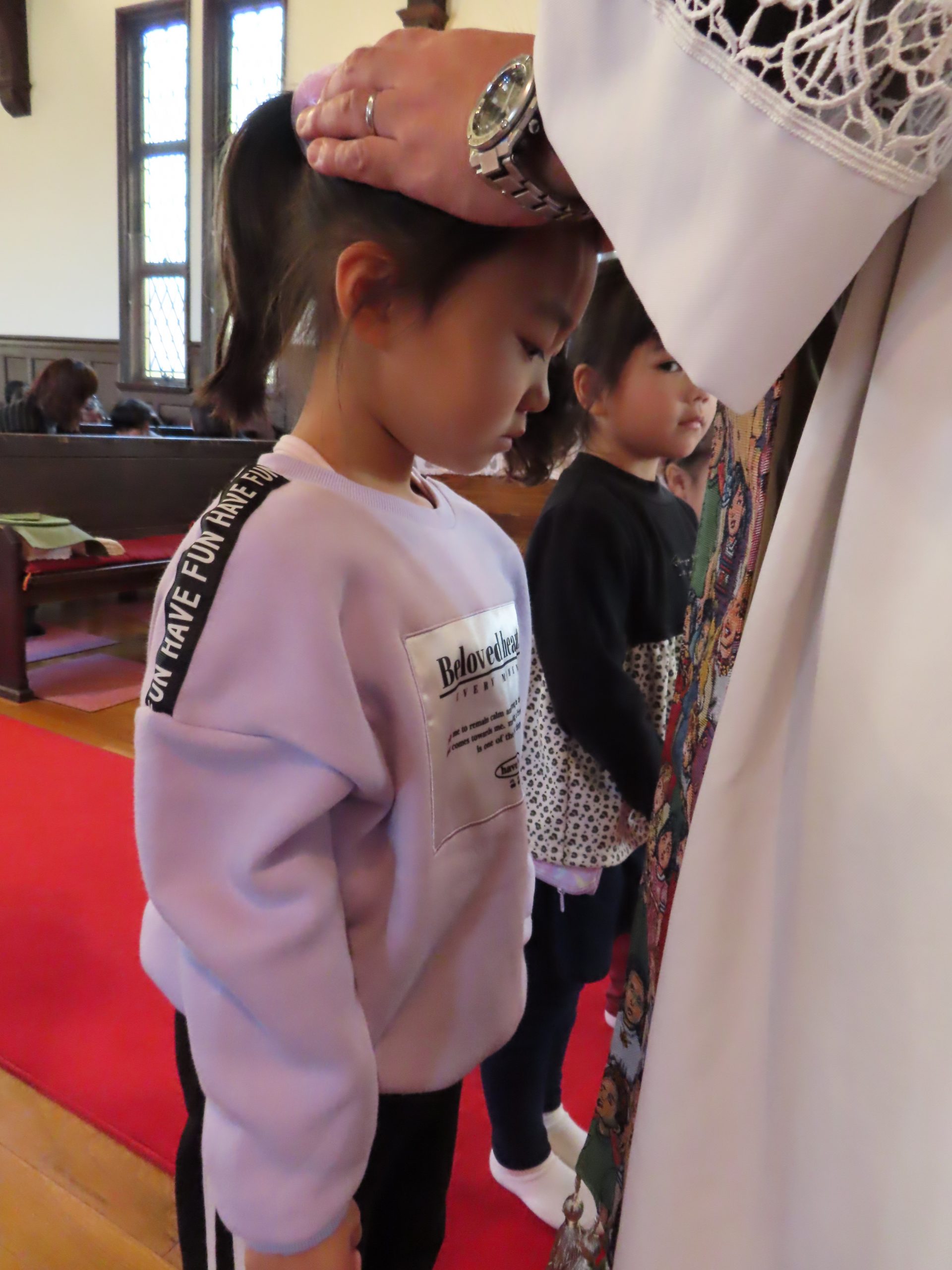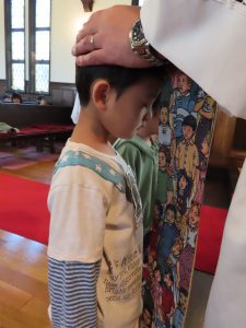 司祭様から、一人ひとり祝福していただきました。