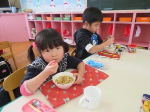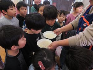 つきたてのお餅を、先生たちが食べやすい大きさに丸めてくれました。