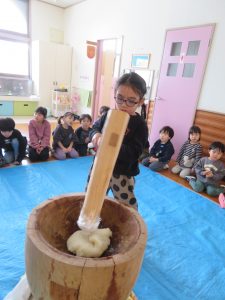 さくら・たんぽぽ組は、小さい杵でペッタンコ!