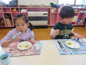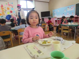 出来るまで、ホールで遊んだり、絵本を見て待ってようね~。