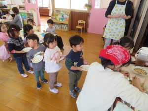 ちゅうりっぷ組は、大・小、好きな方の杵を選んで、ペッタンコ!