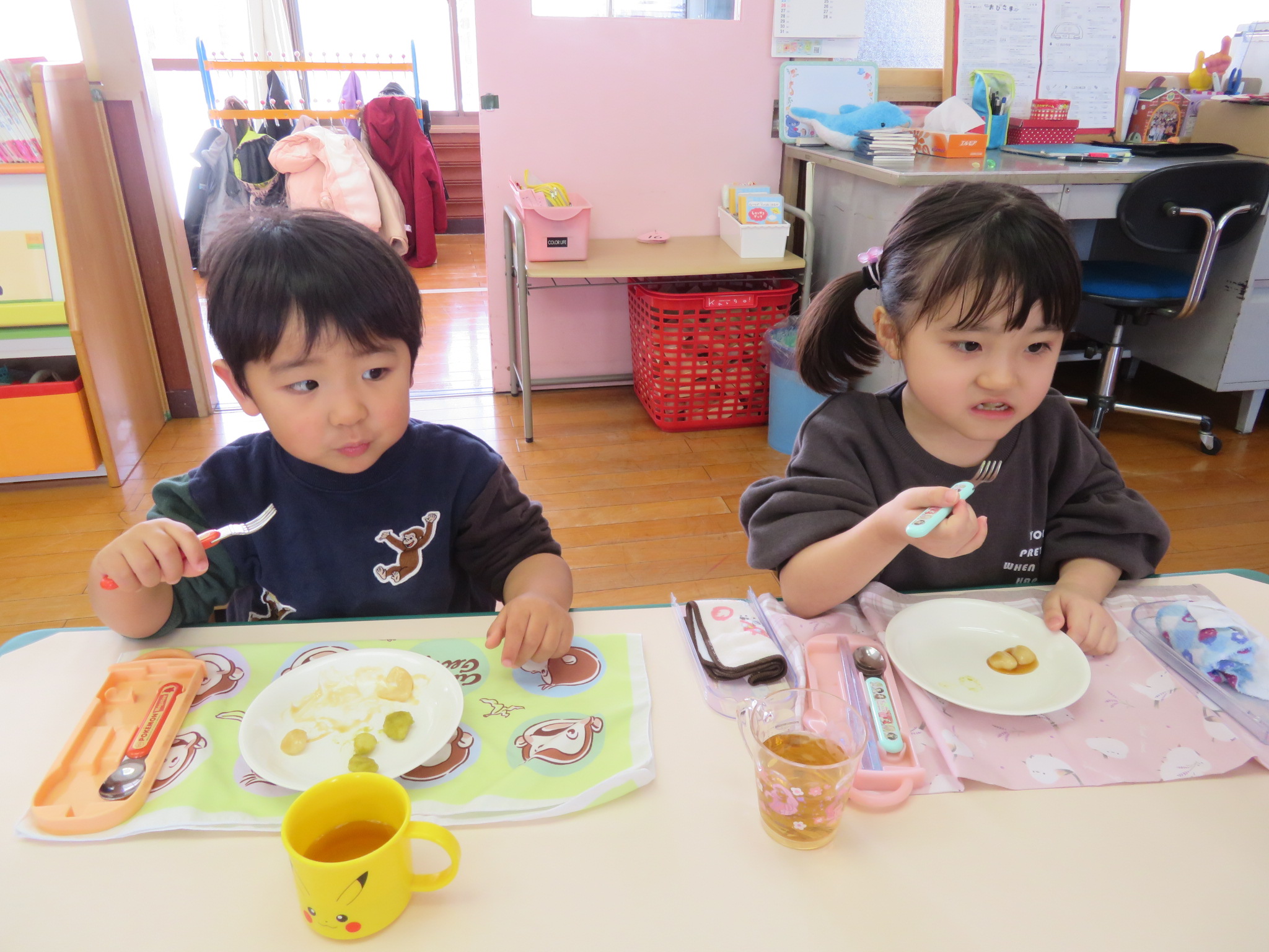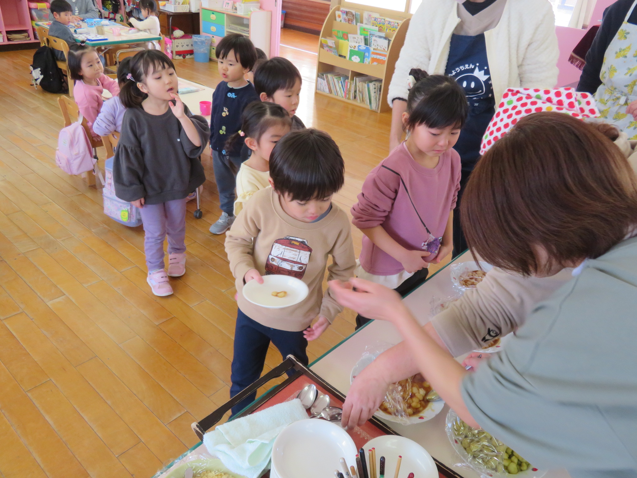 出来るまで、ホールで遊んだり、絵本を見て待ってようね~。