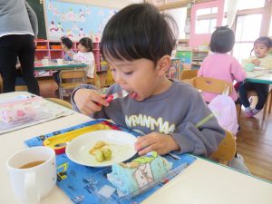 つきたてのお餅を、先生たちが食べやすい大きさに丸めてくれました。