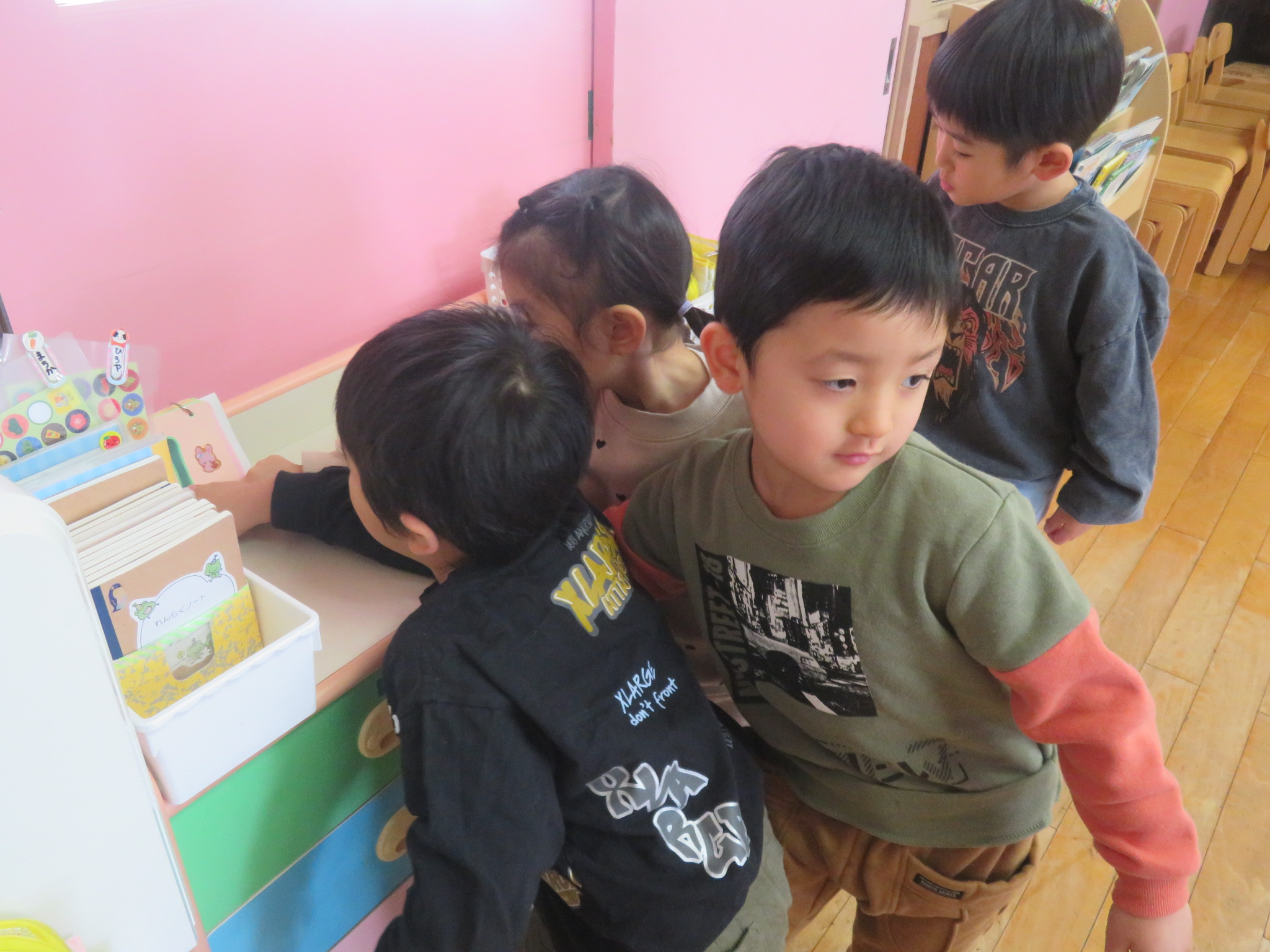 お友だちがシャッフルするから、見つけてね!