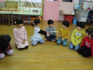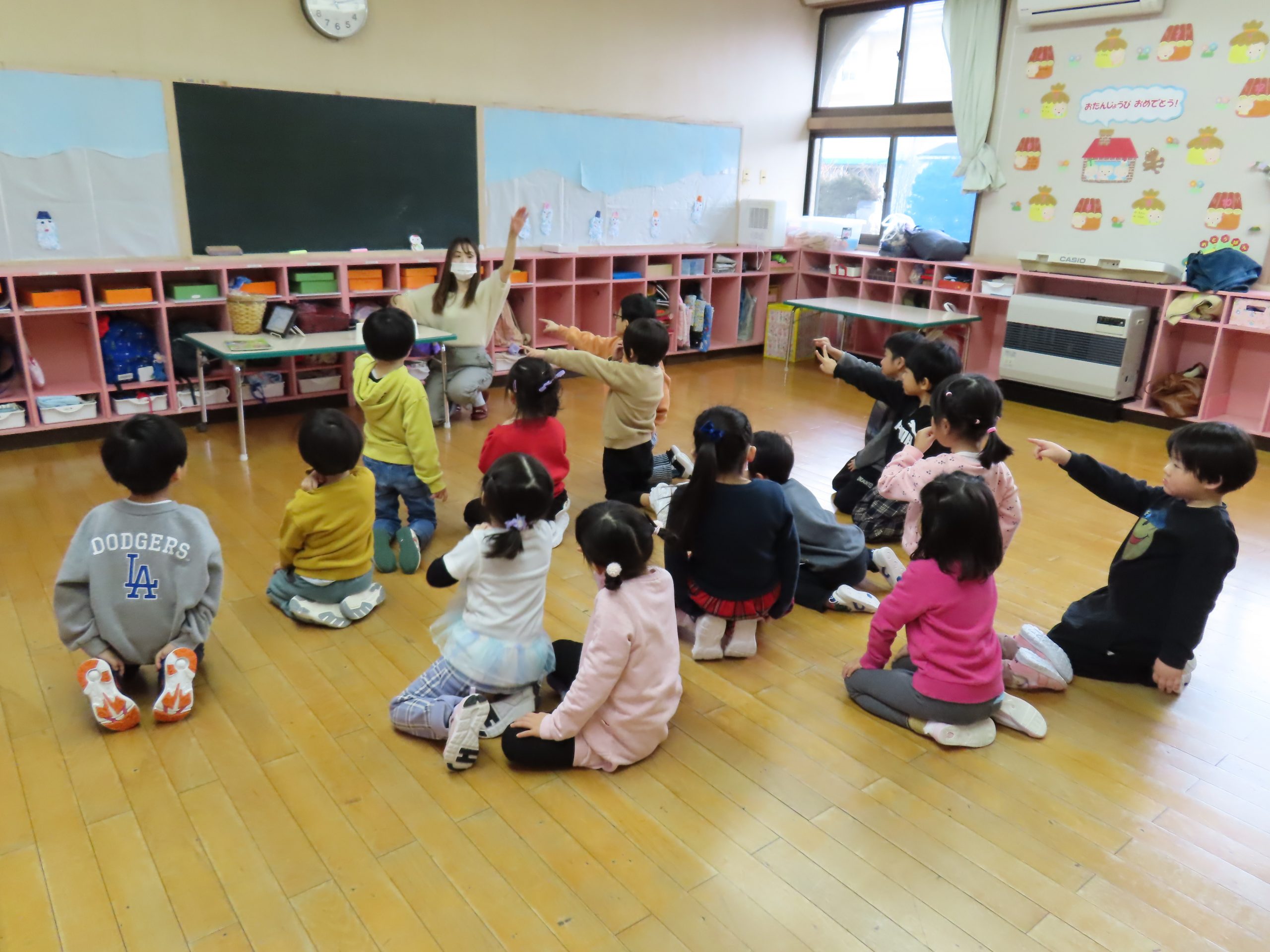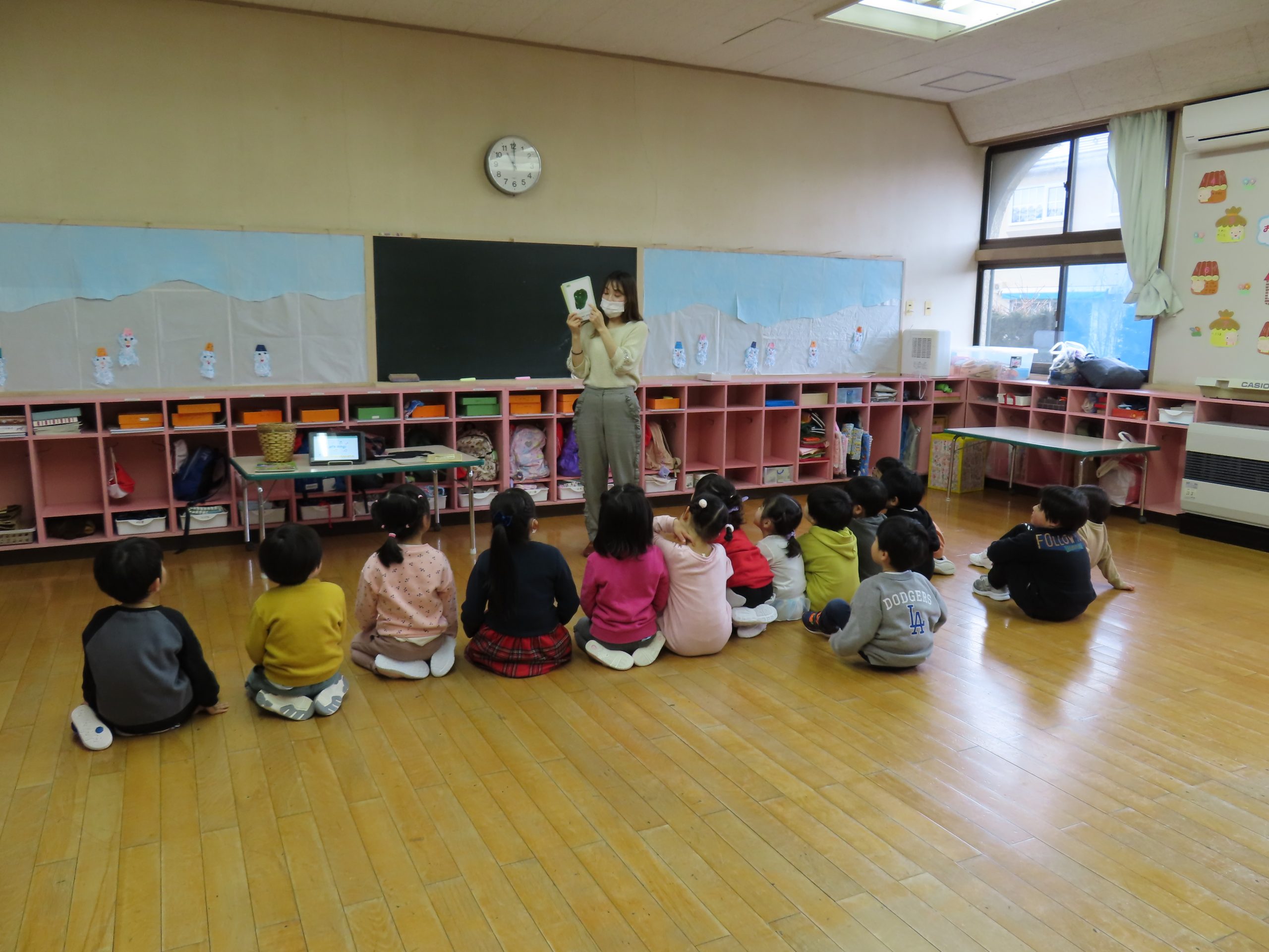 みんな静かにお話を聞いていますね!
