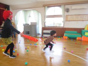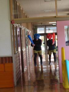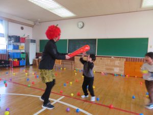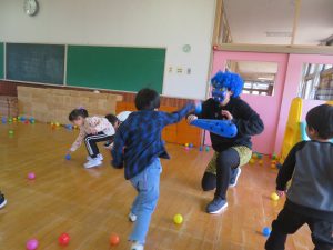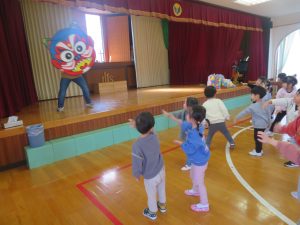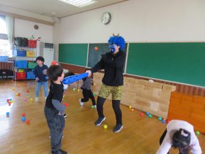 今年も豆ではなく、カラーボールで鬼退治をしましたよ。