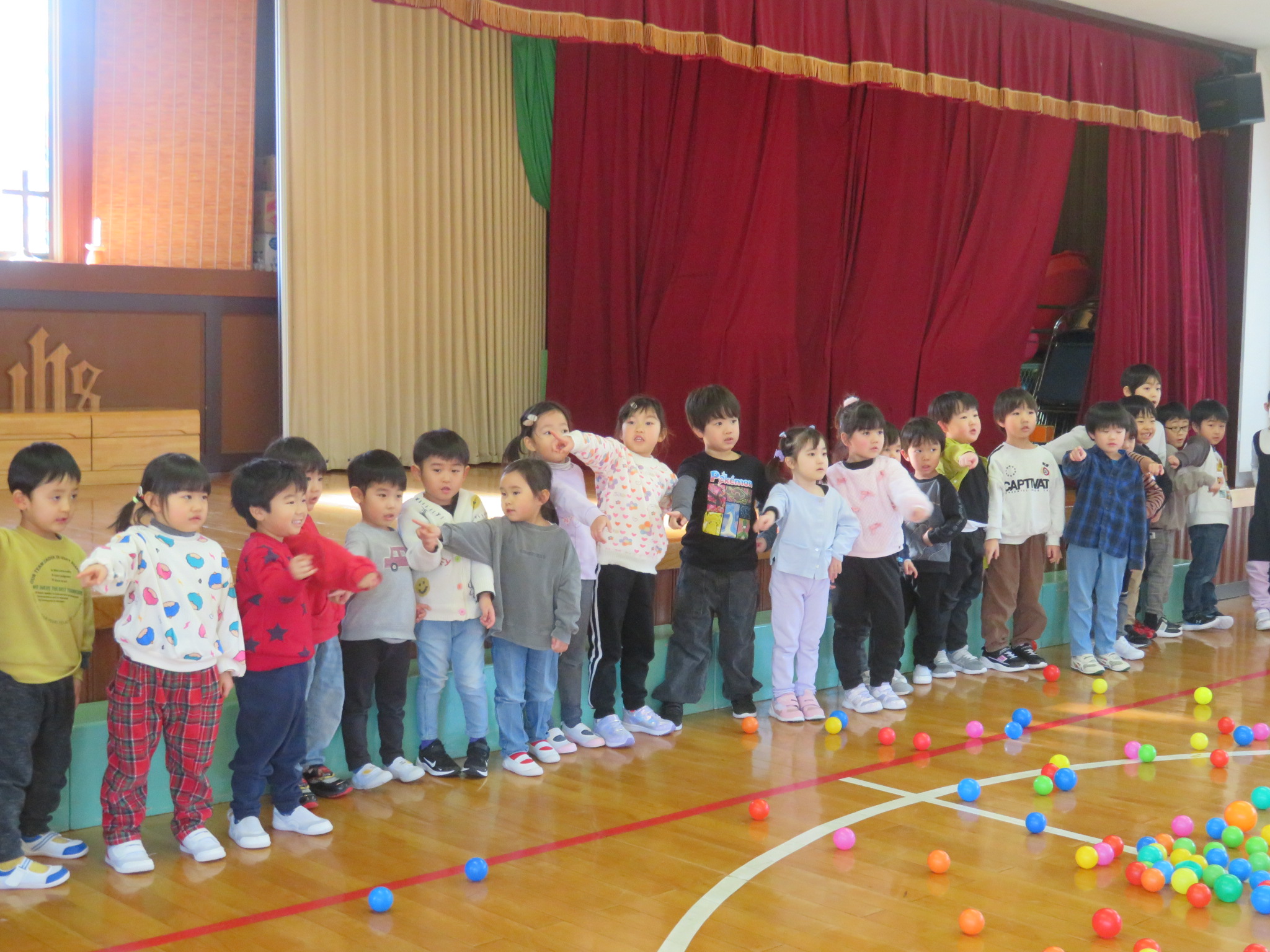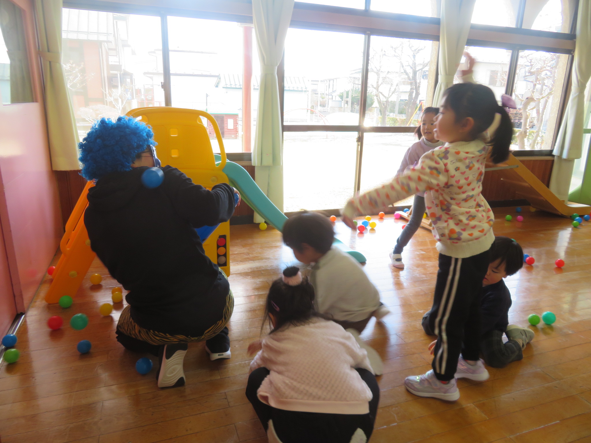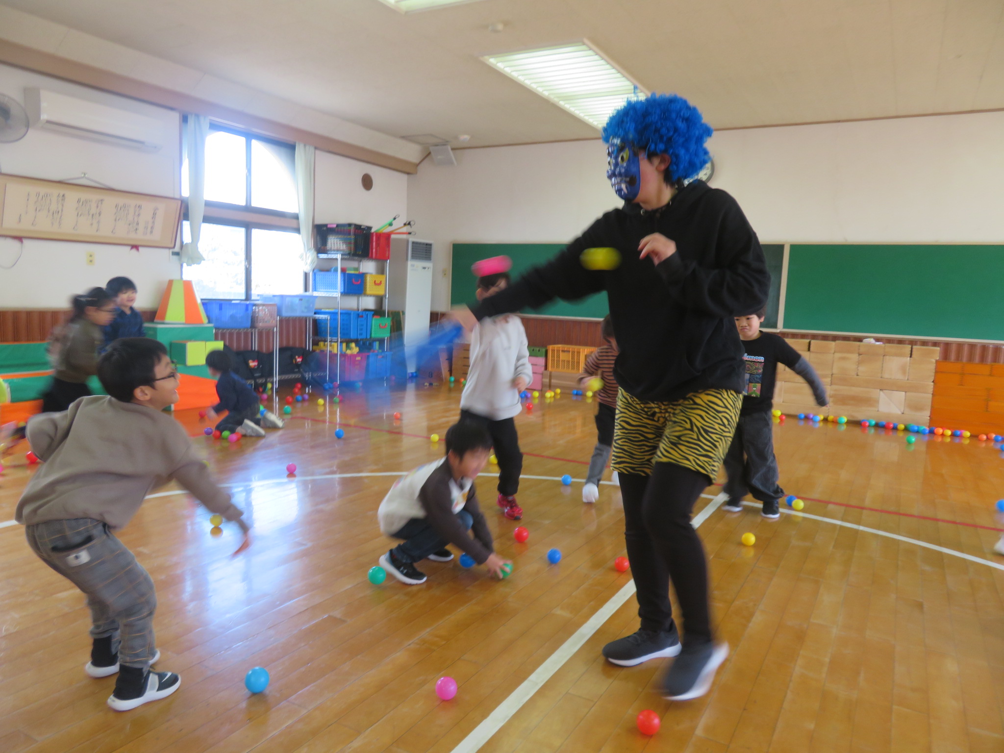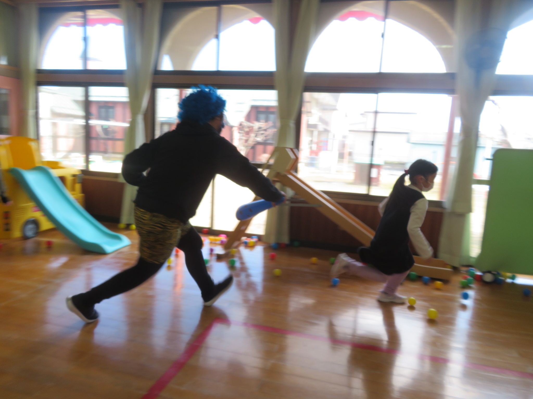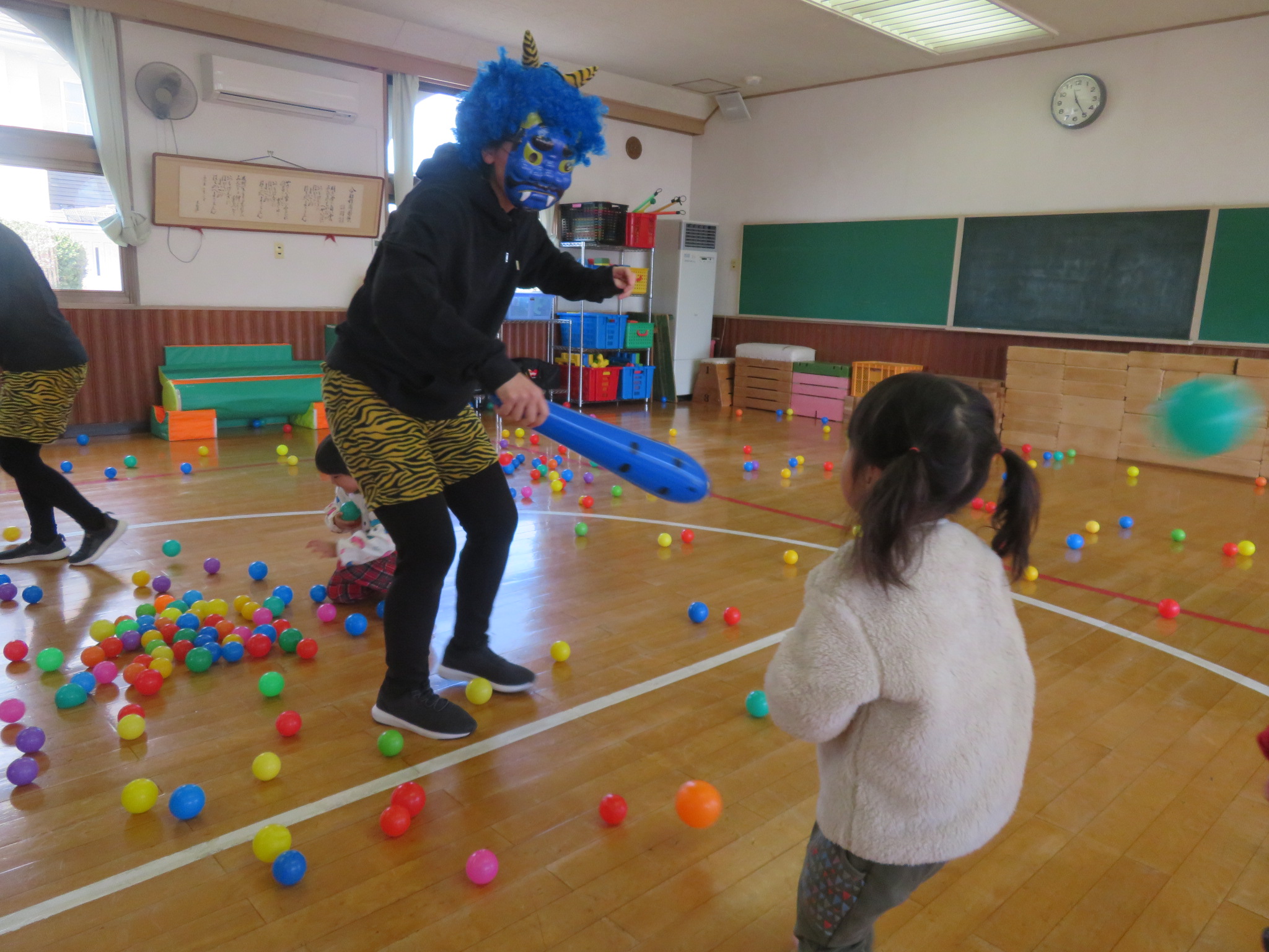 今年も豆ではなく、カラーボールで鬼退治をしましたよ。