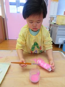 ちゅうりっぷさんは、絵の具を塗っていますよ!