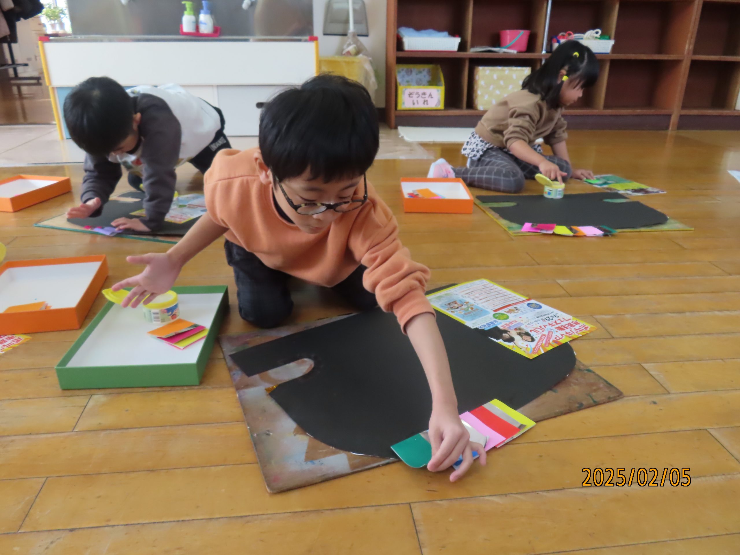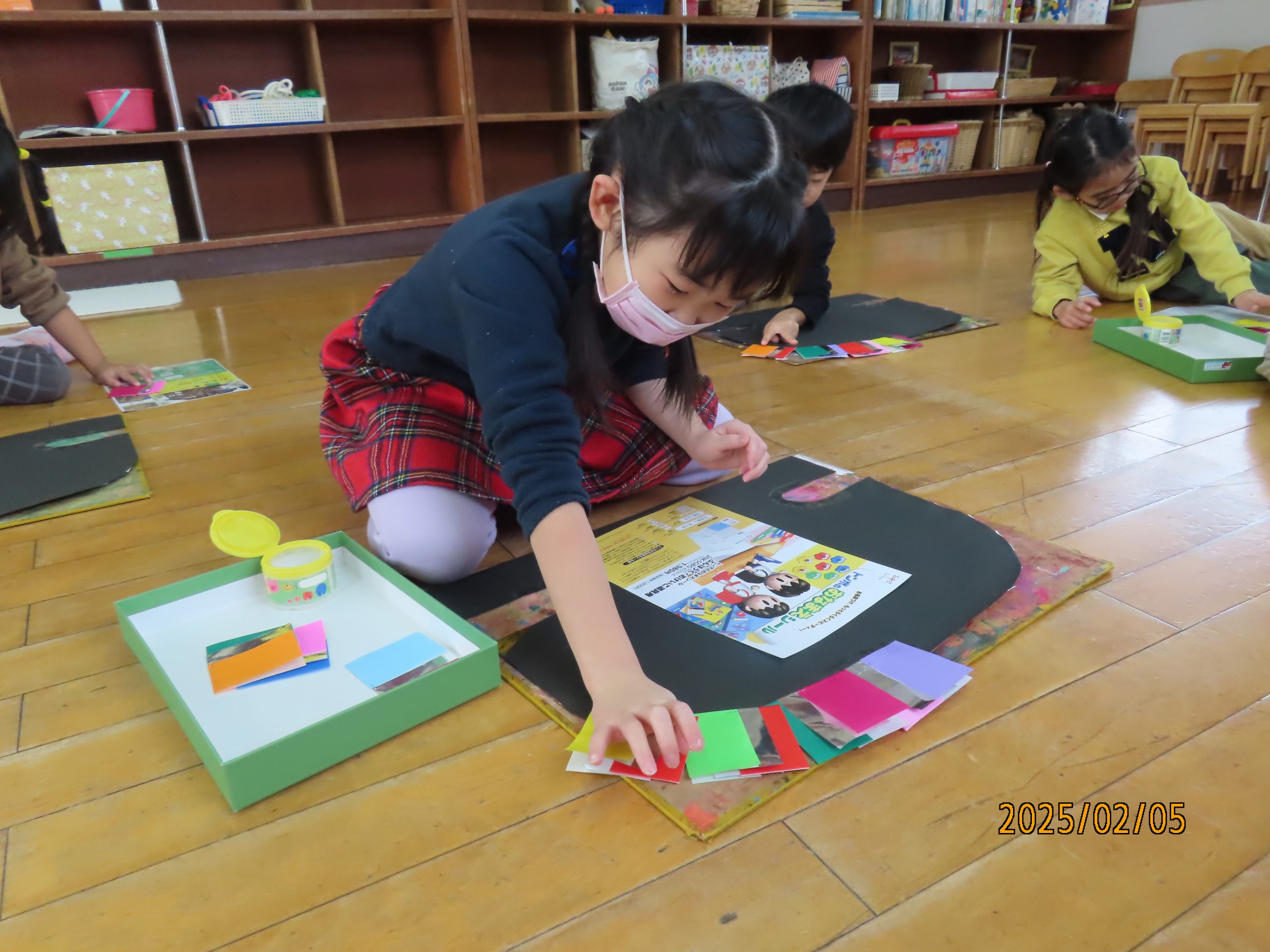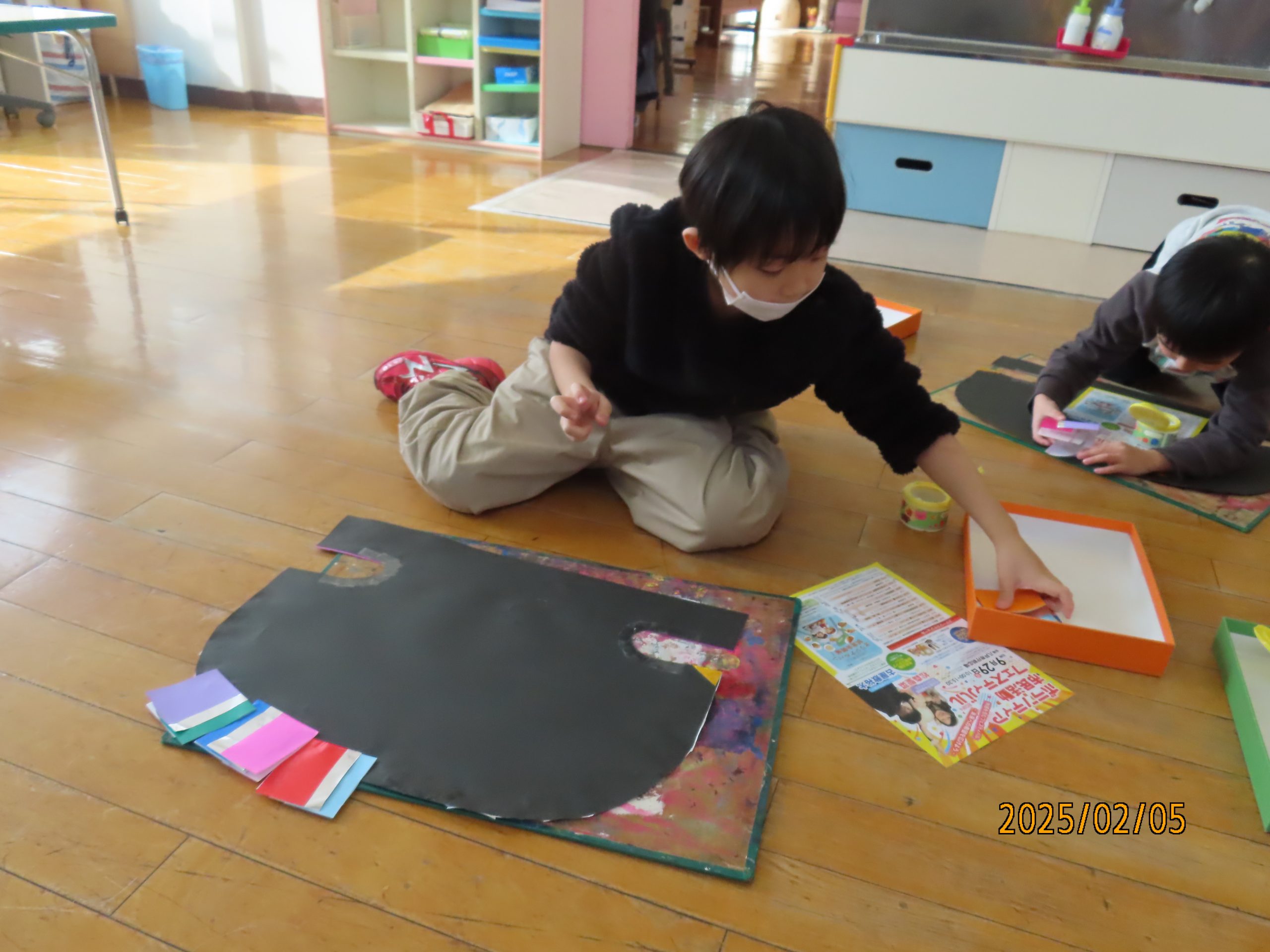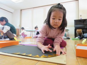 今日も、クラスごとに烏帽子を作りましたよ(*^^*)