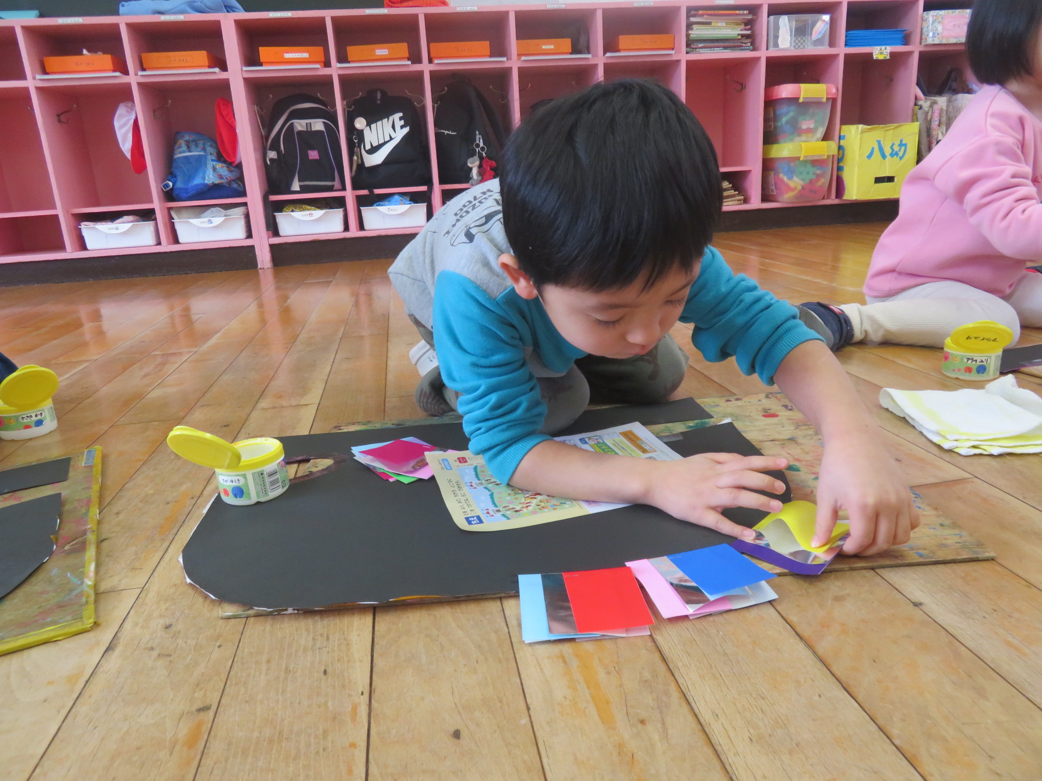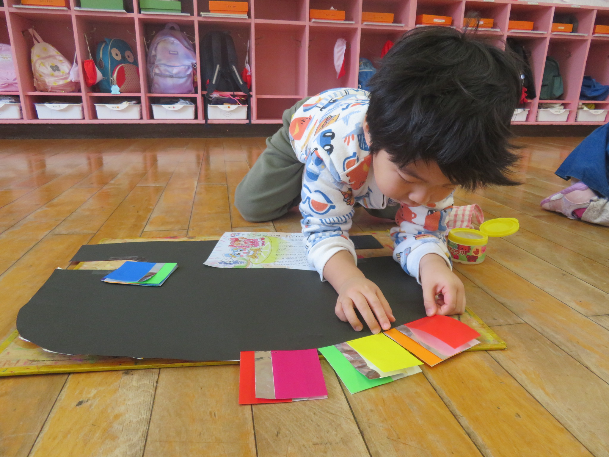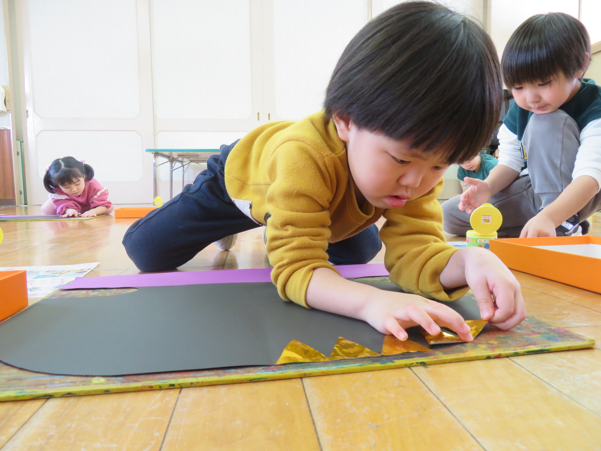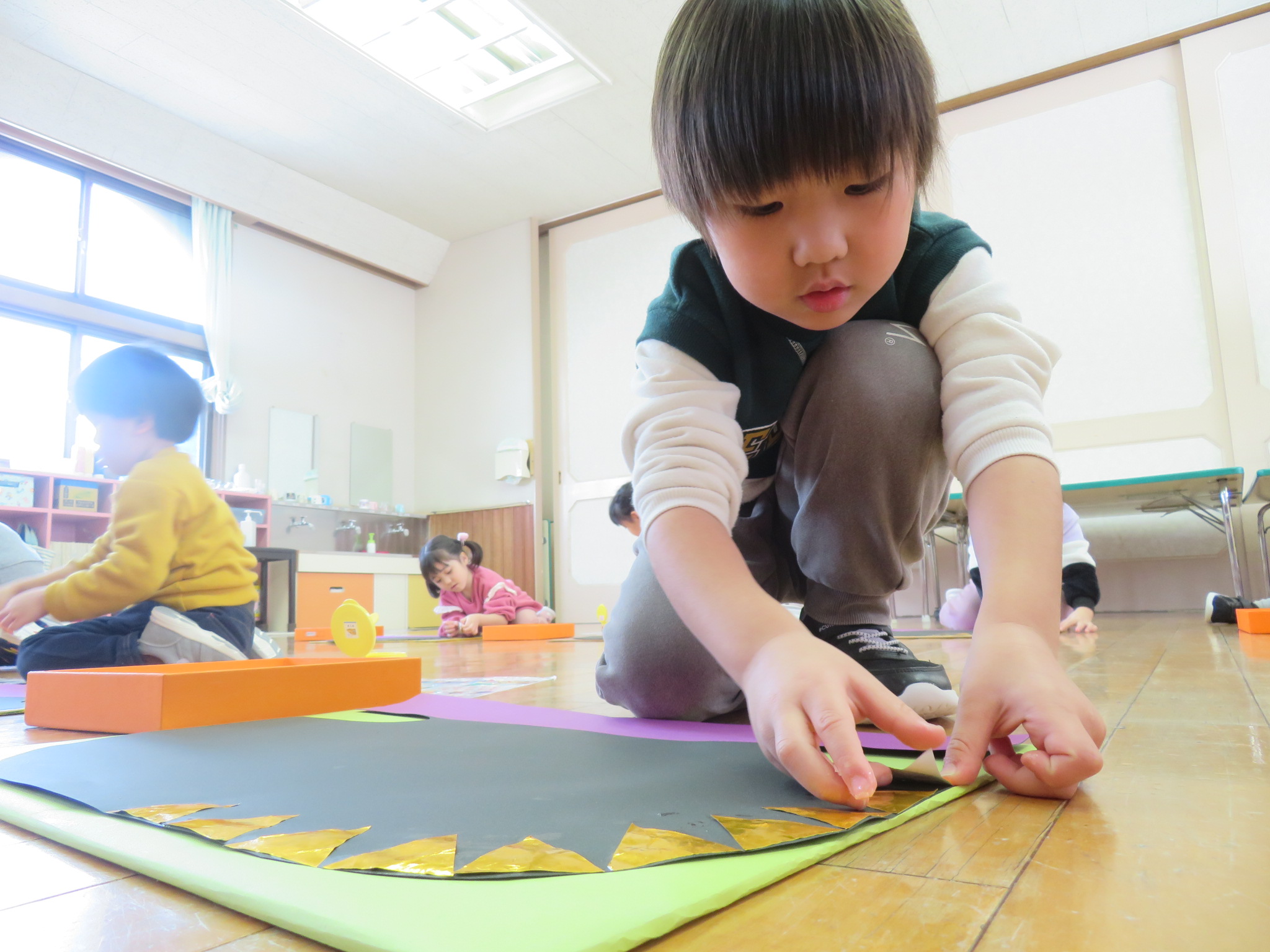今日も、クラスごとに烏帽子を作りましたよ(*^^*)