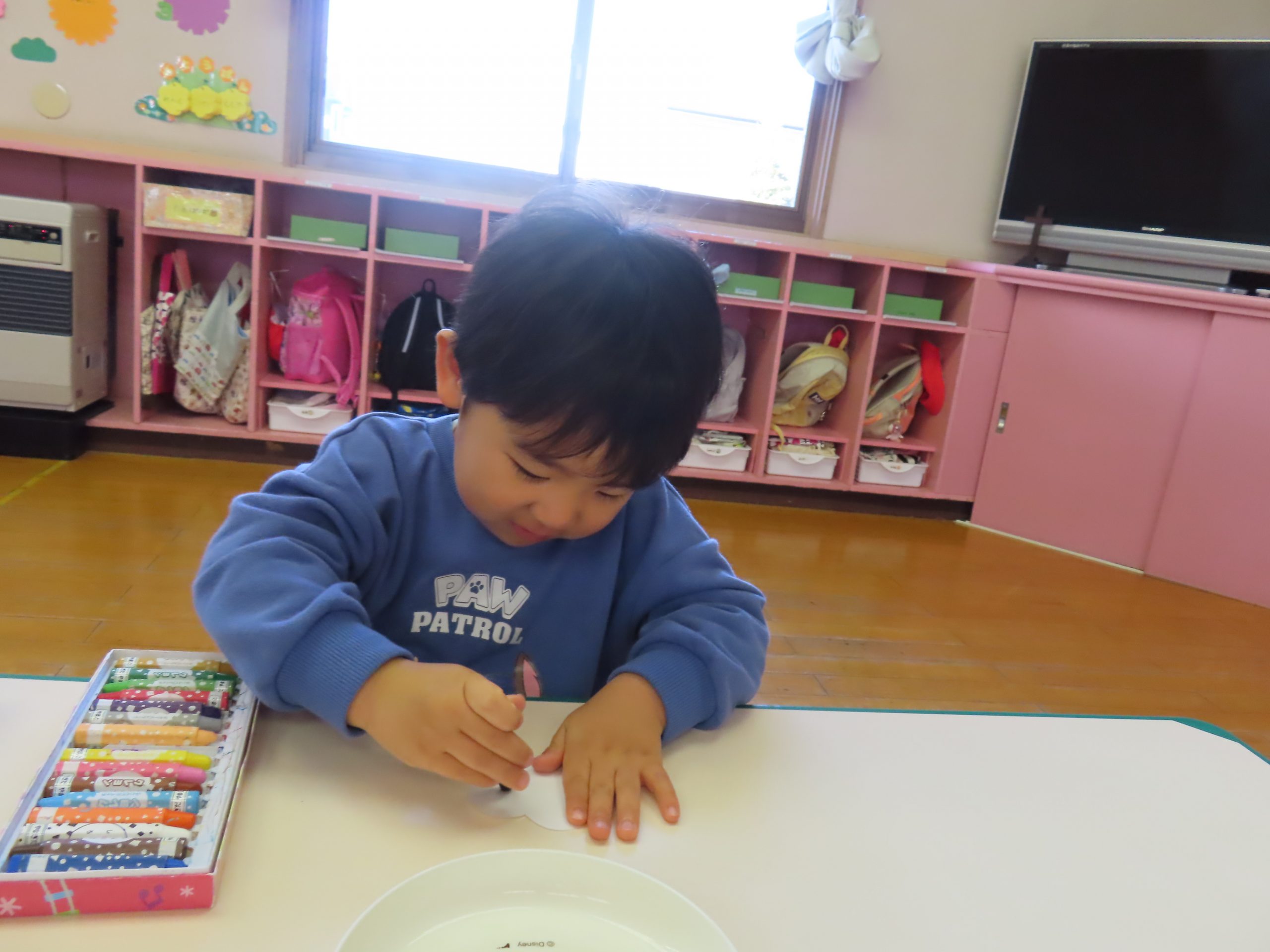 クレヨンでお顔をかきかき🖍