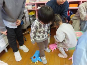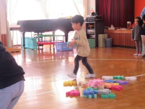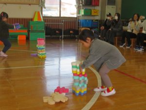 まずは、『積み木重ねレース』!