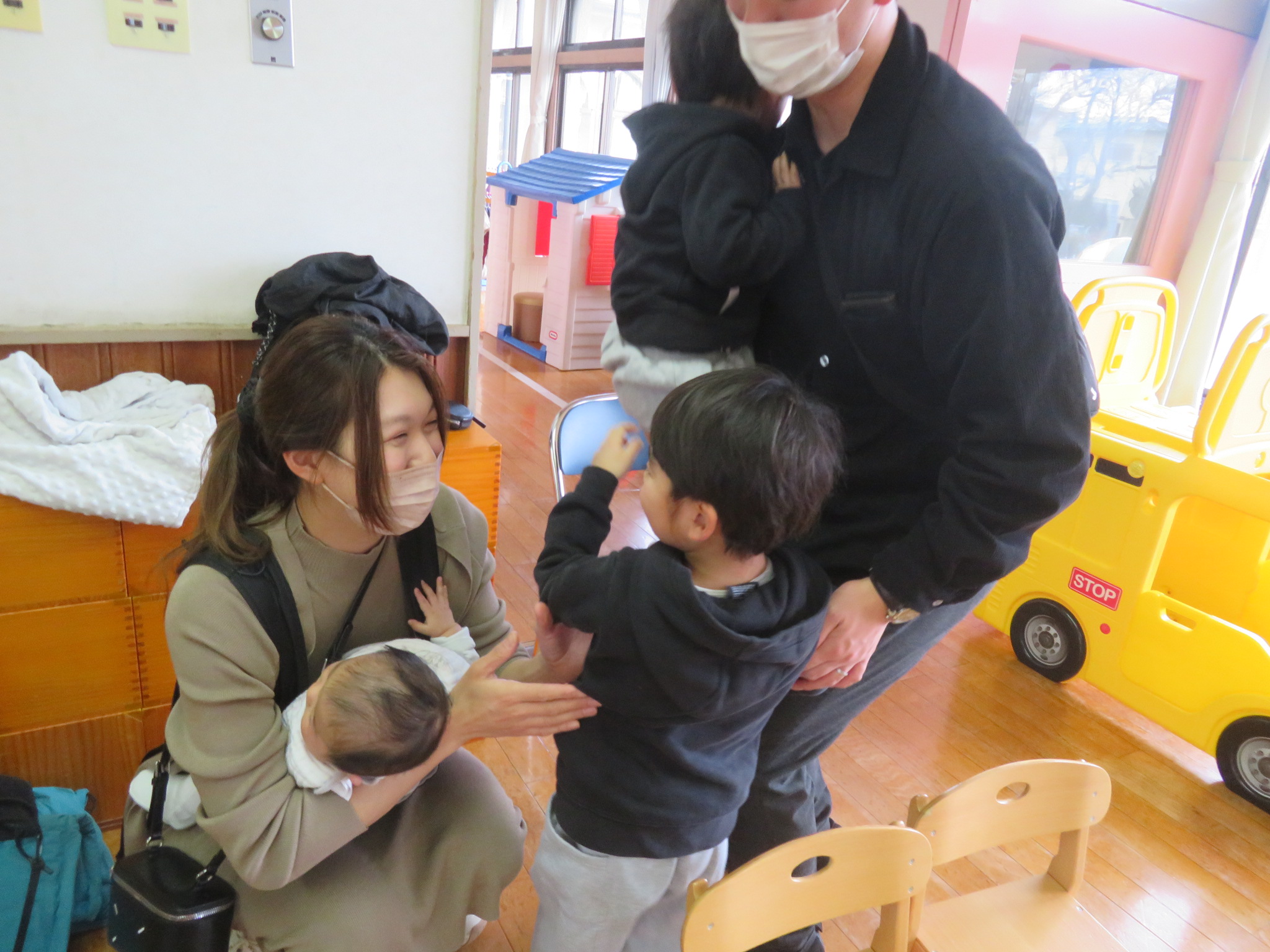 ママとパパの姿が見えてニコニコ笑顔がいっぱいの子どもたちです(*^^*)