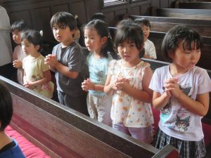 1学期、みんなが元気で楽しく過ごせたことに感謝して、お祈りをおささげします。