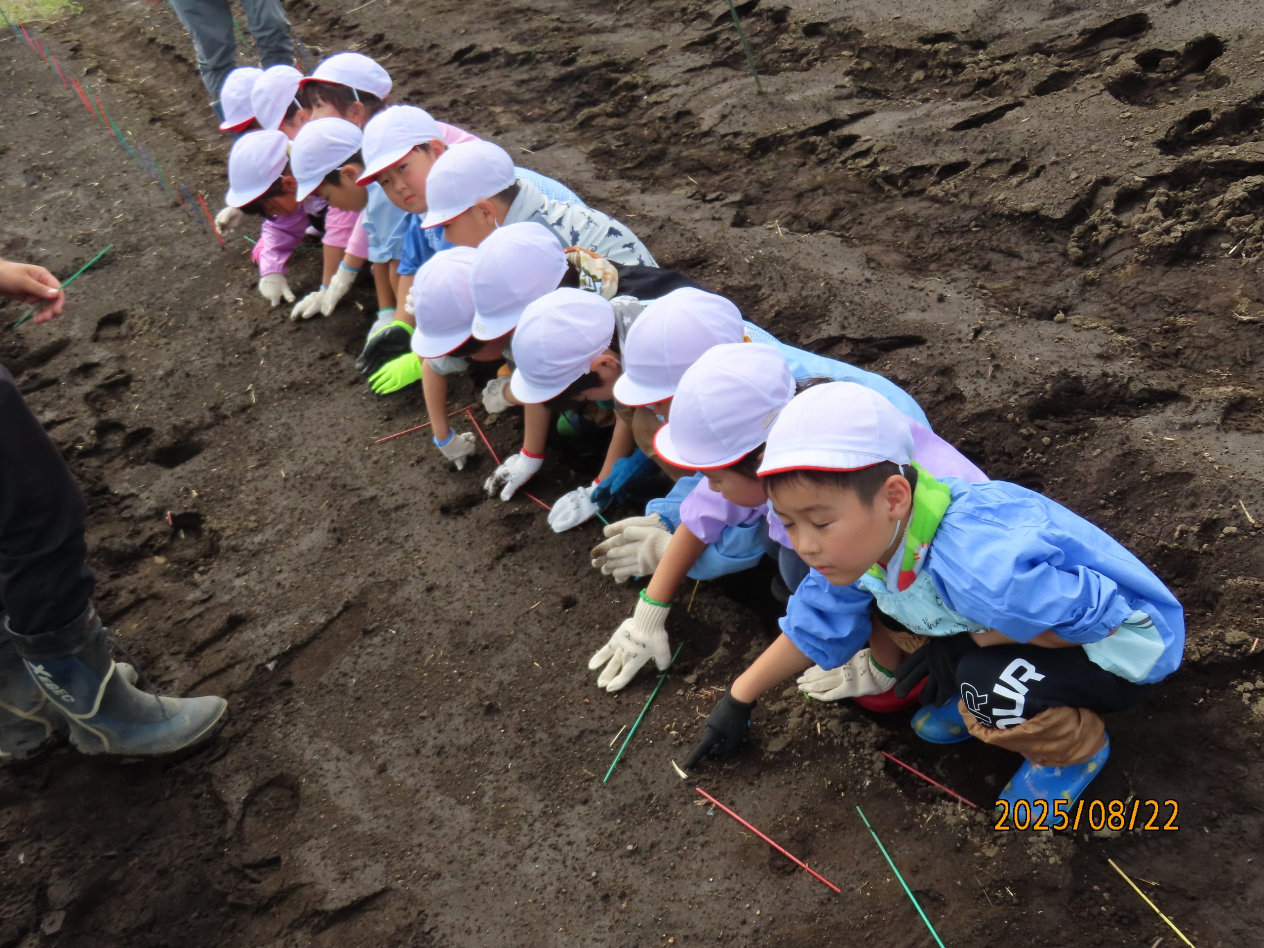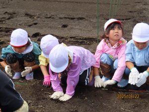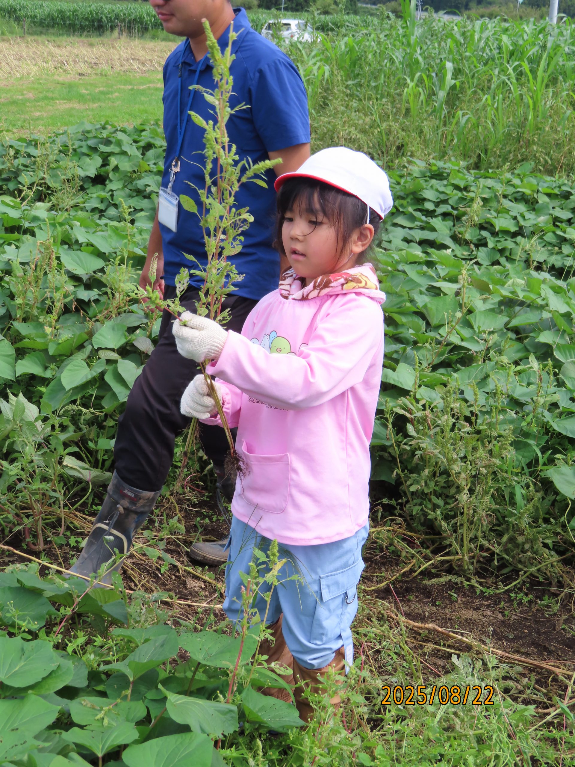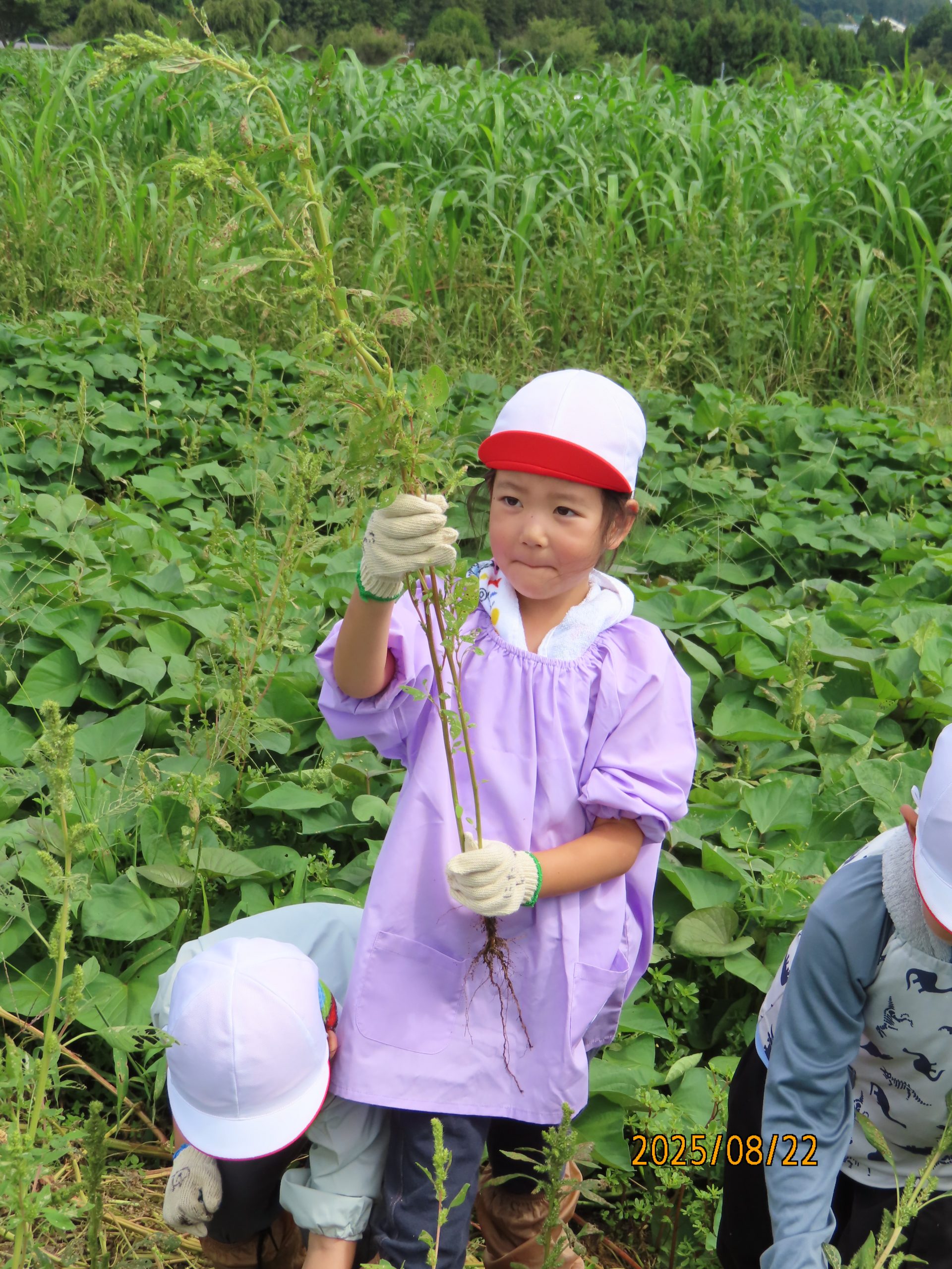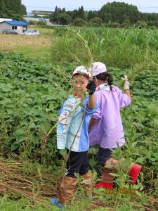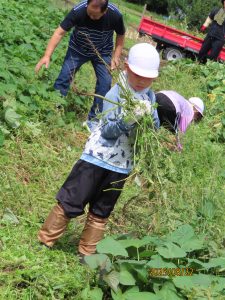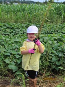 春に植えたさつまいも畑の草取りと、大根の種植えです!
