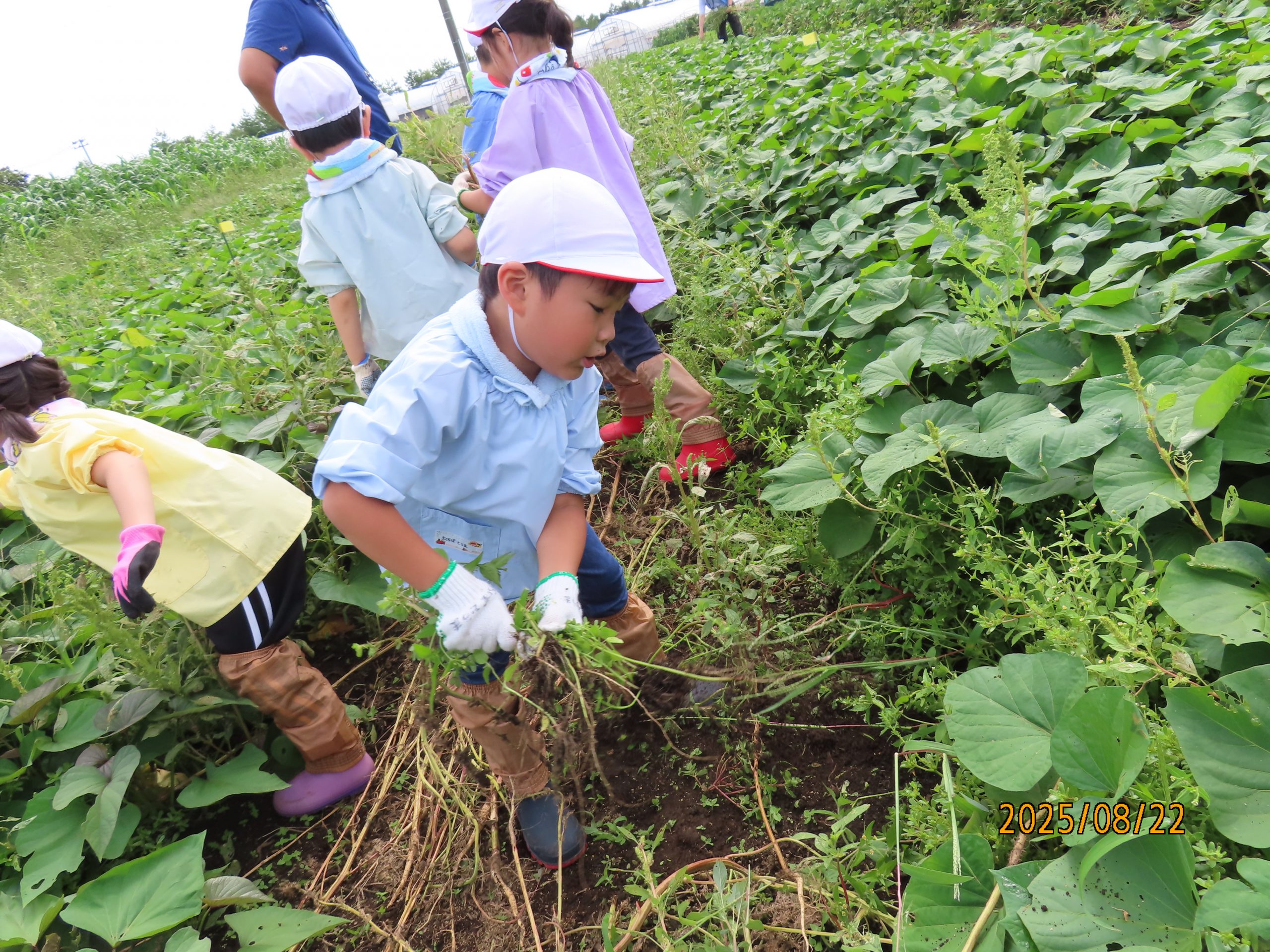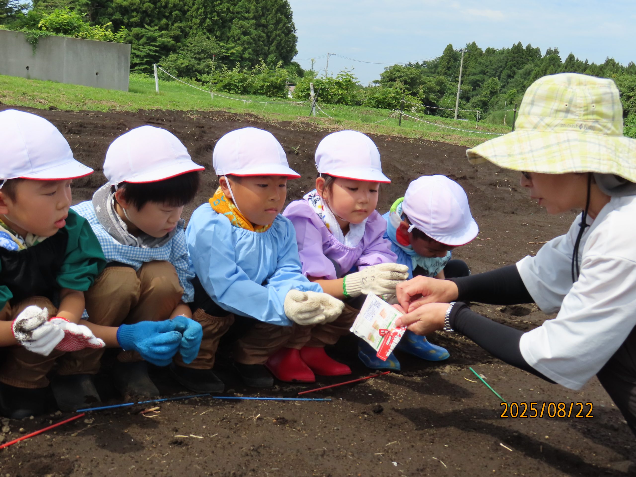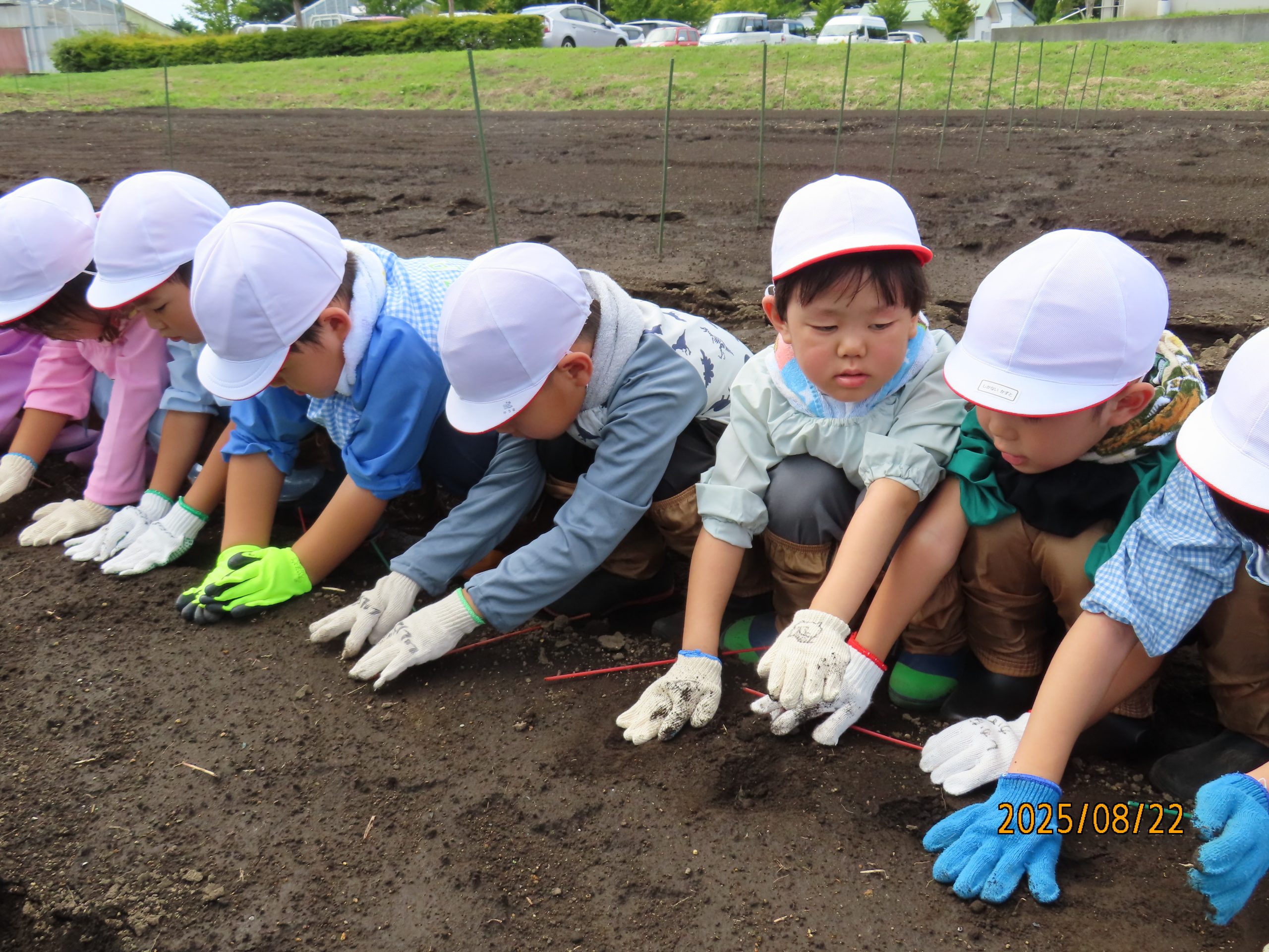 春に植えたさつまいも畑の草取りと、大根の種植えです!