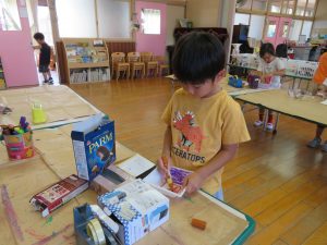 制作コーナーでは「何を作ろうかな…」と悩み中