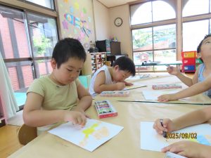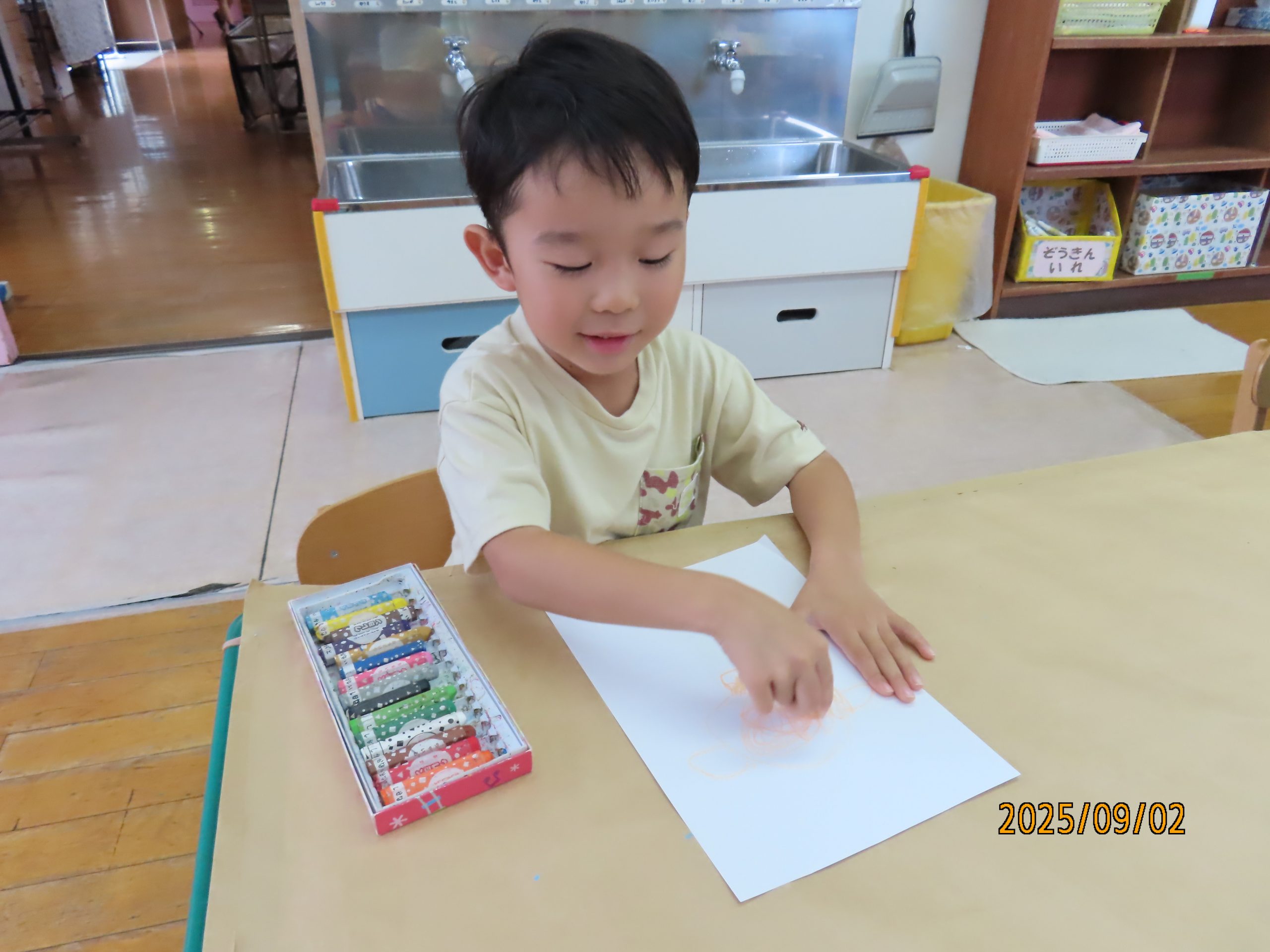 すみれさんは、ぼく・わたしのお絵描きをしました(*^^*)