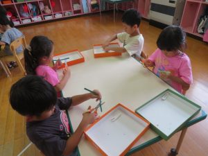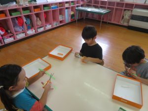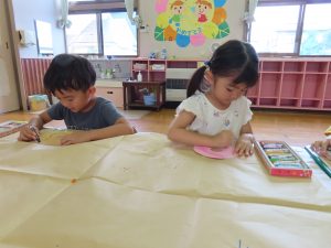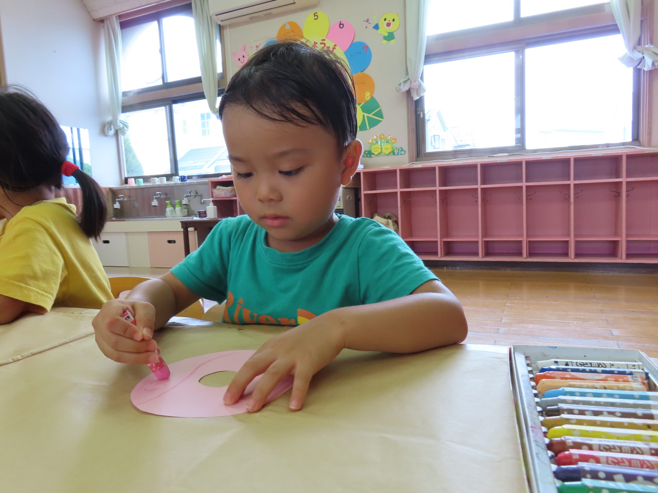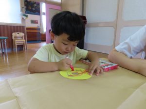 ま~るい画用紙に、かきかき!何を作っているのかな?