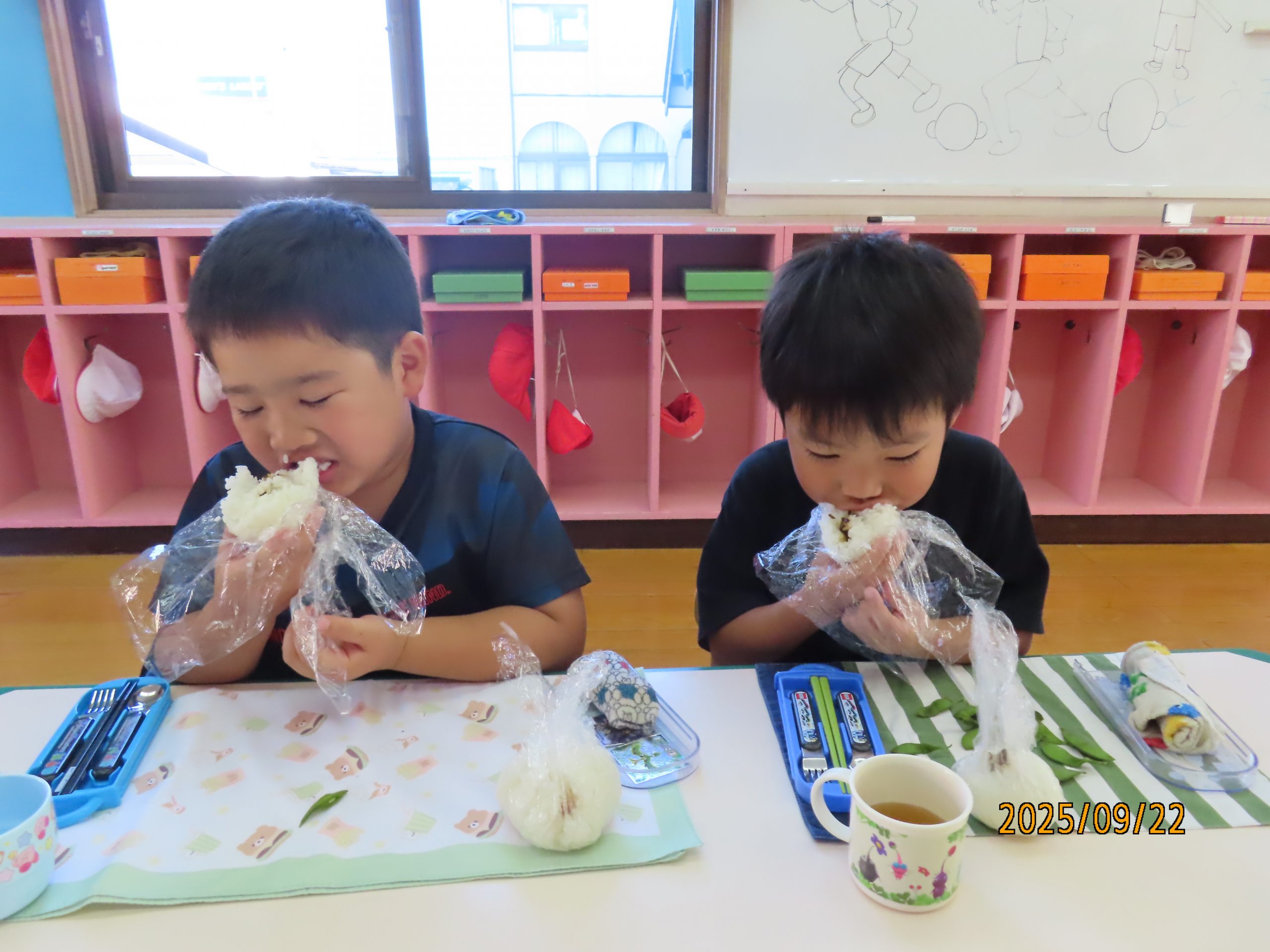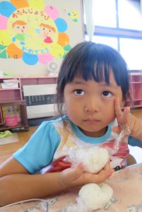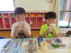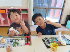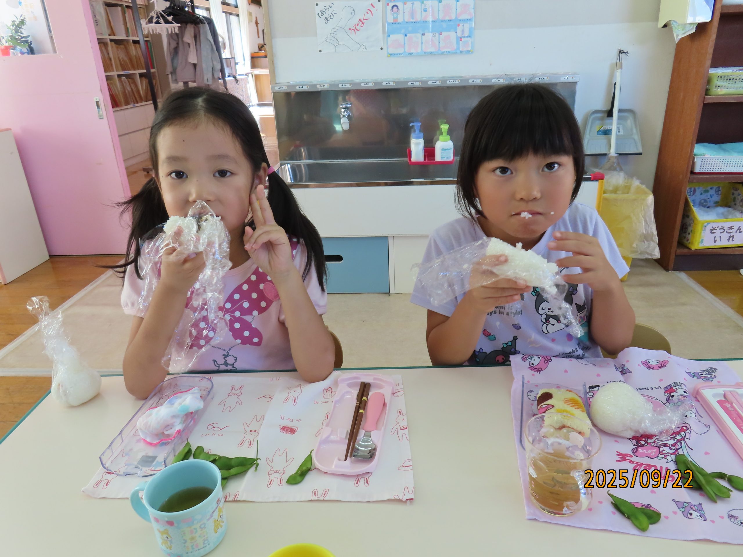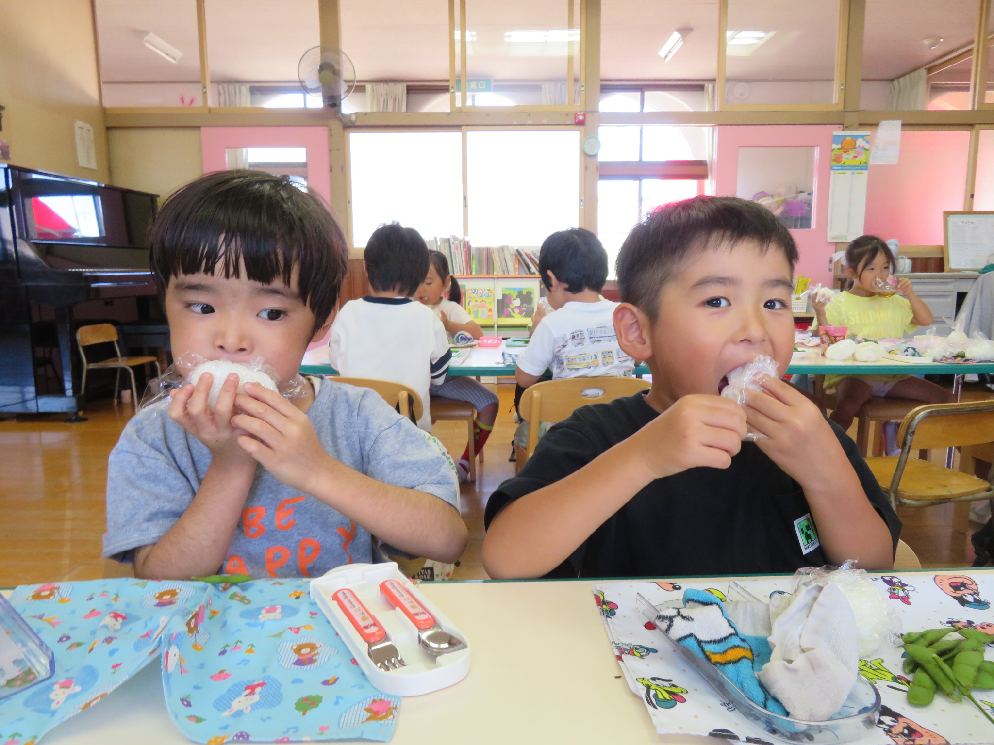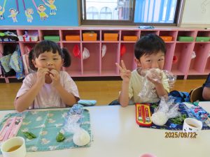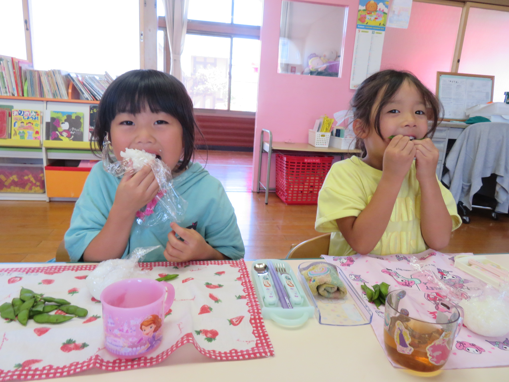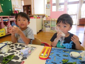 今日のお昼は…みんなが作った「枝豆とおにぎり!」