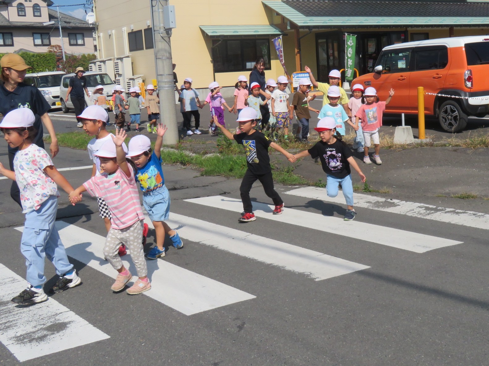 ひとつ目の横断歩道、発見!おててをあげて渡ろうね(*^^*)