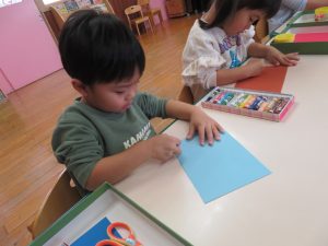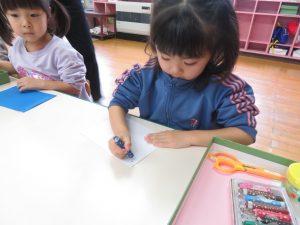 形を描けたら、はさみでチョキチョキ✂