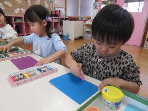 たんぽぽさんも、クレヨンで何か描いてるみたいですよ!
