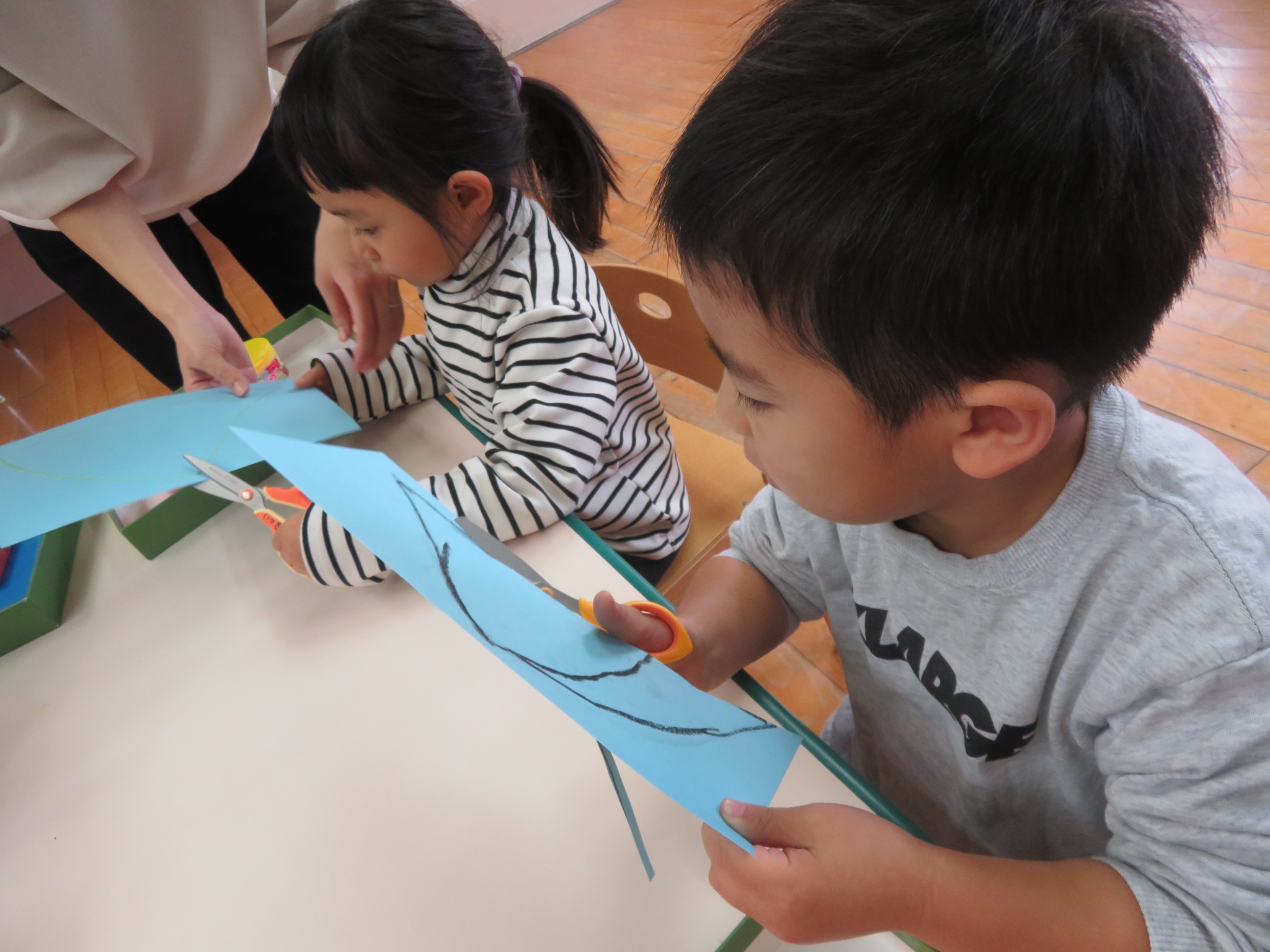 形を描けたら、はさみでチョキチョキ✂