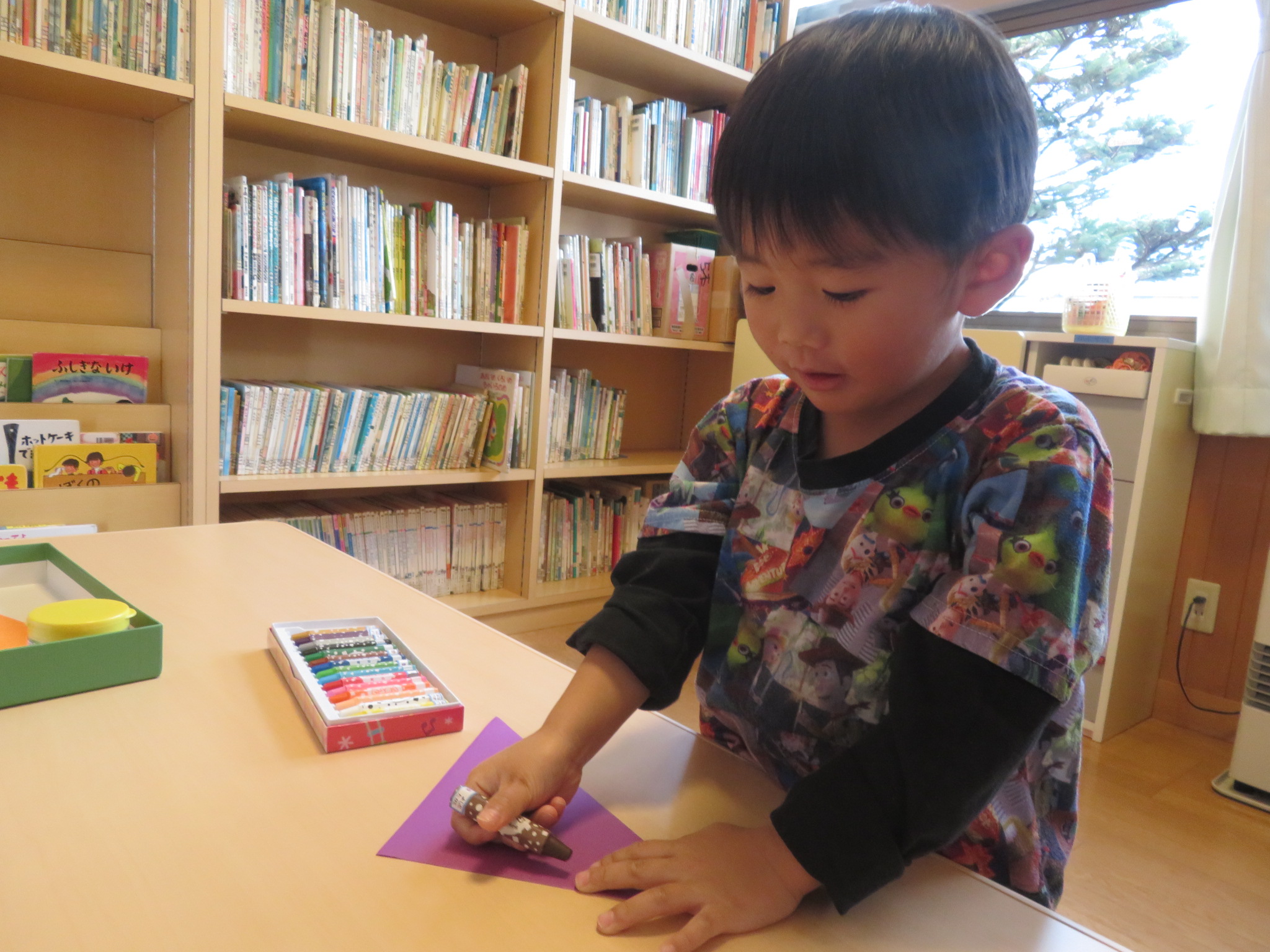 たんぽぽさんも、クレヨンで何か描いてるみたいですよ!