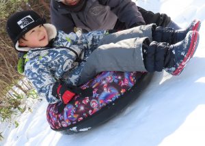 すみれさんが、スノーチューブ滑りの体験にお出かけです!