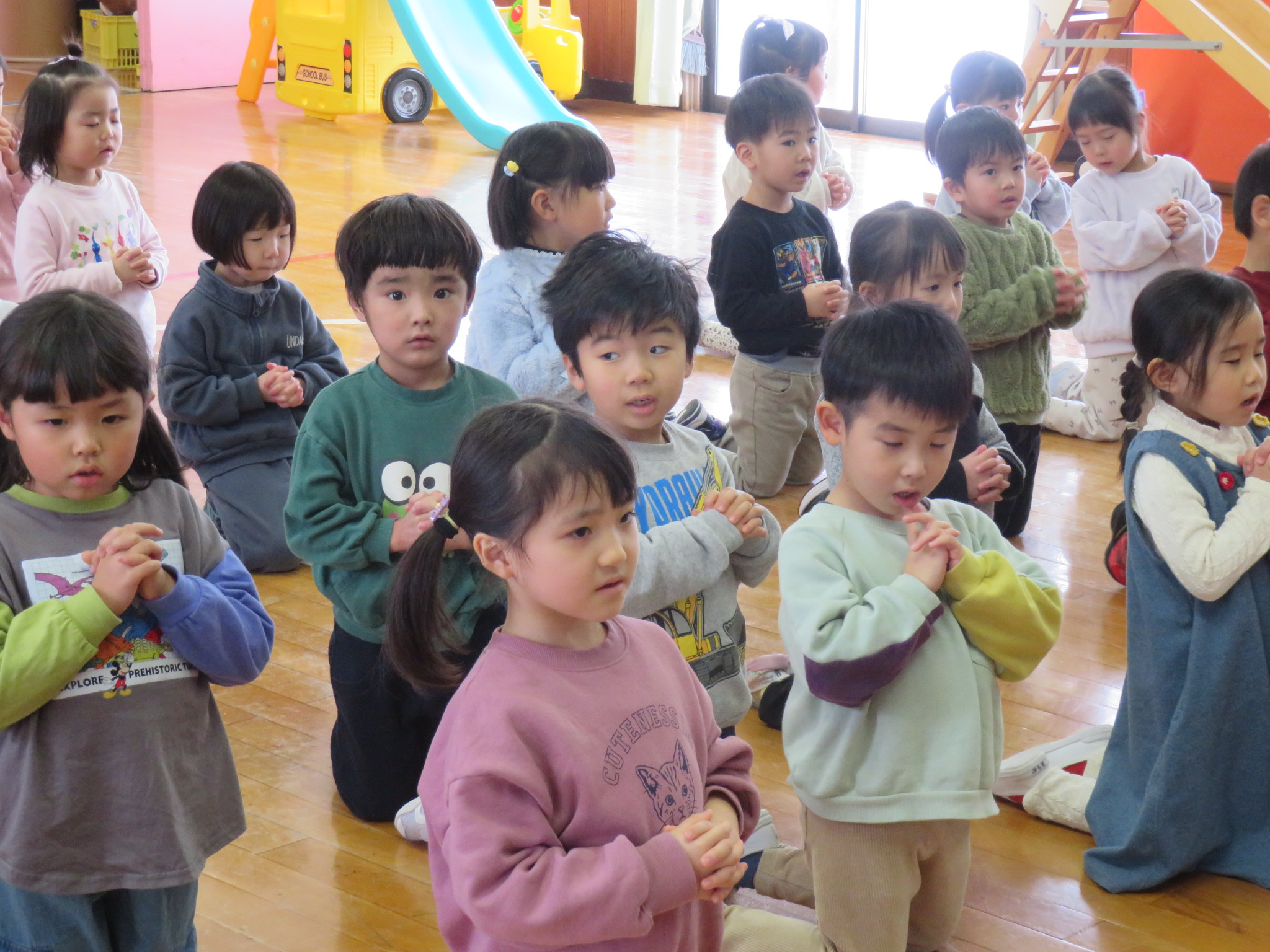 今週も元気に過ごせたことに感謝して、お祈りをおささげしました。