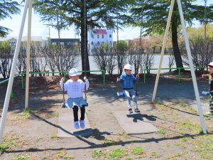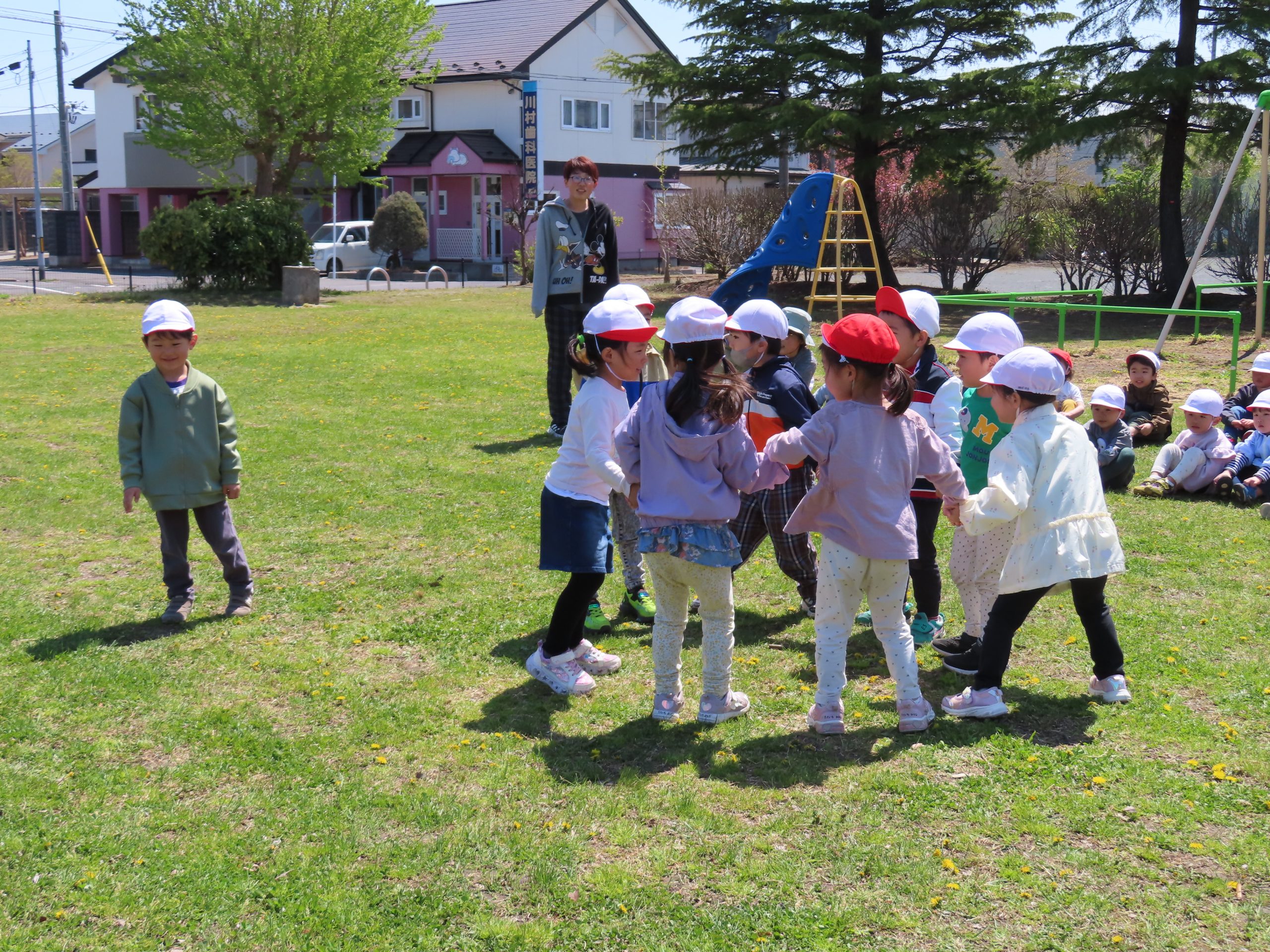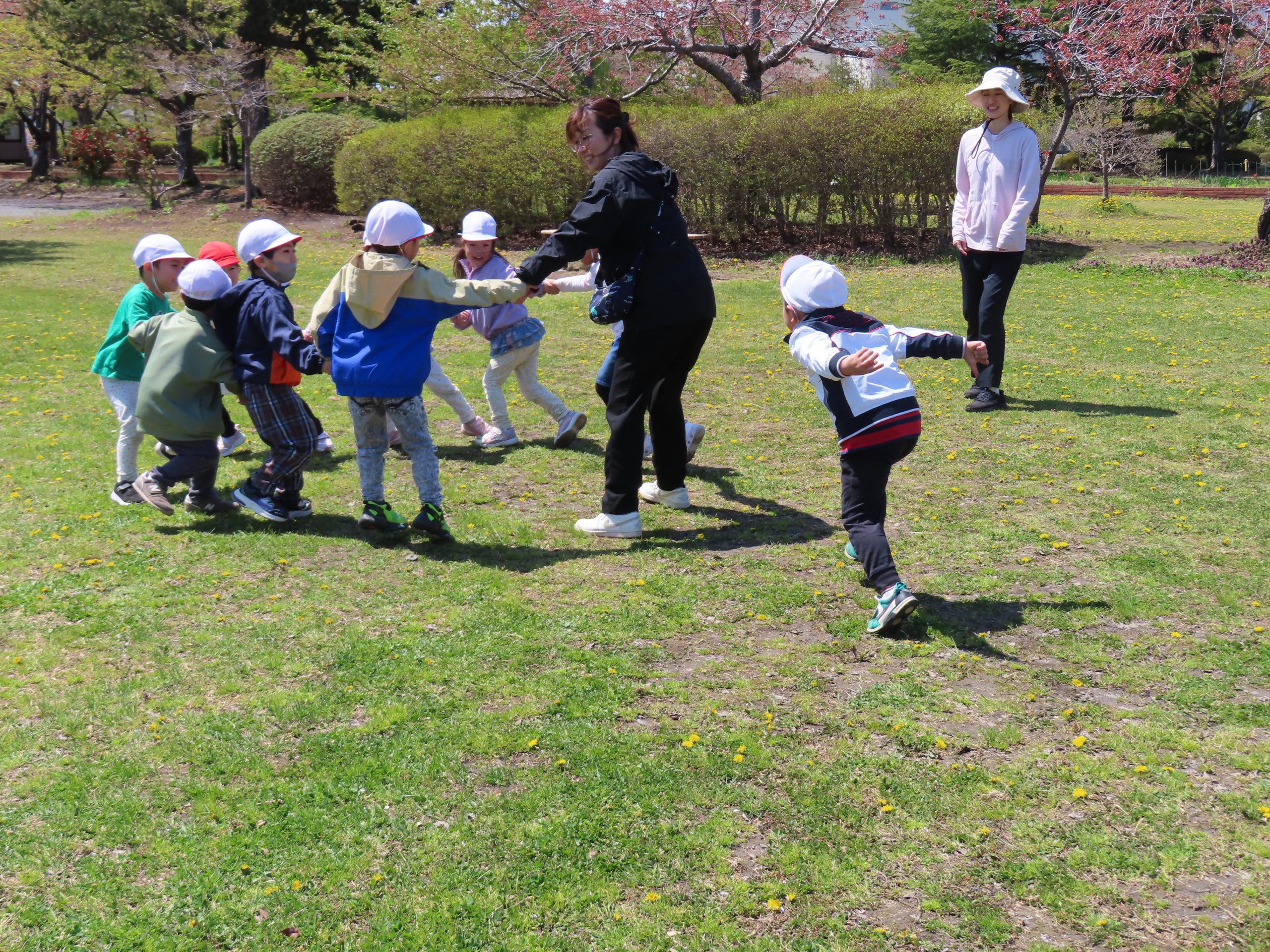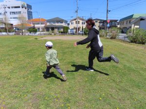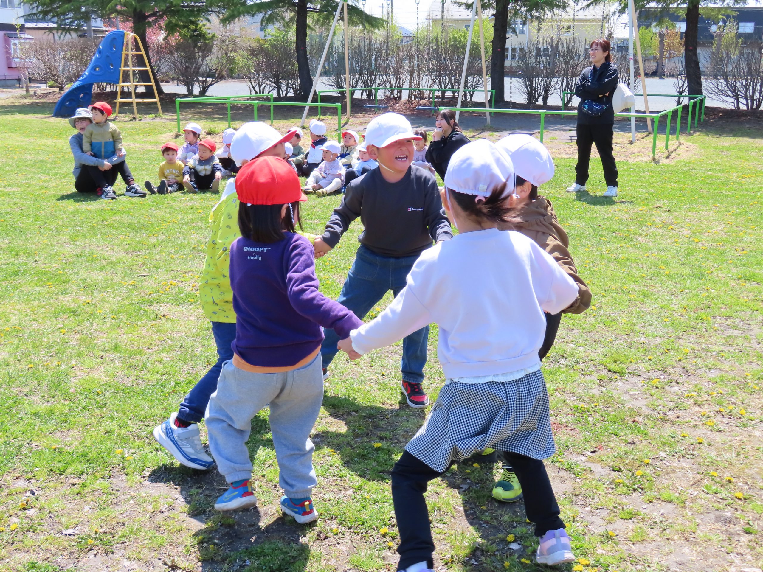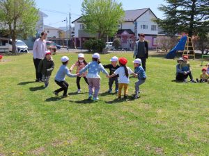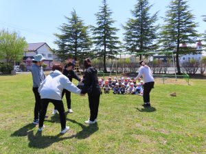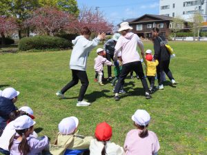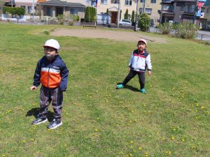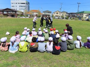 お外での集団遊び、みんなしっかりお話をきいて、ルールを守って楽しむことができました!