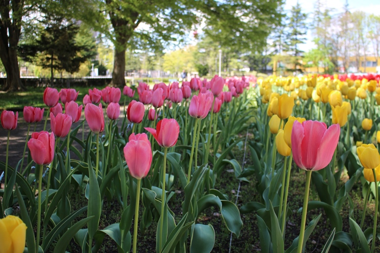 早速ちゅうりっぷ畑が見えてきたよ~👀