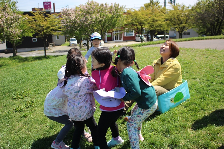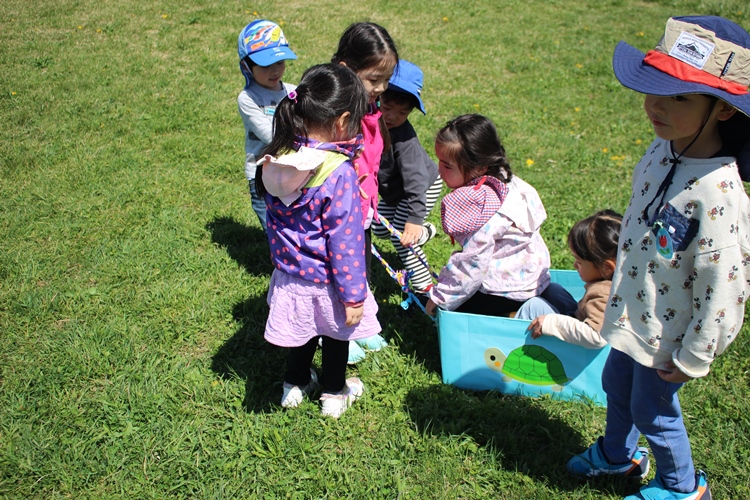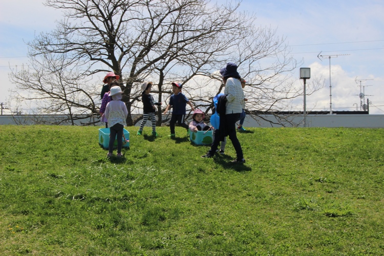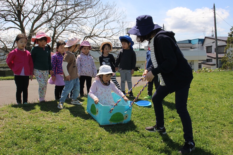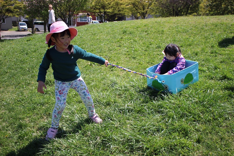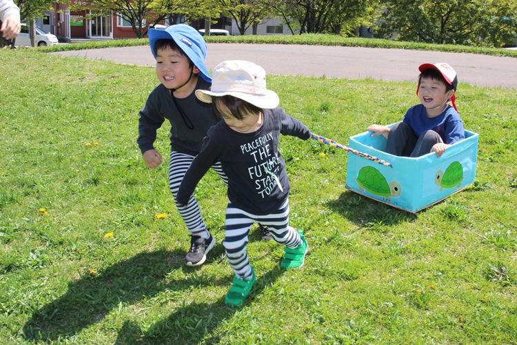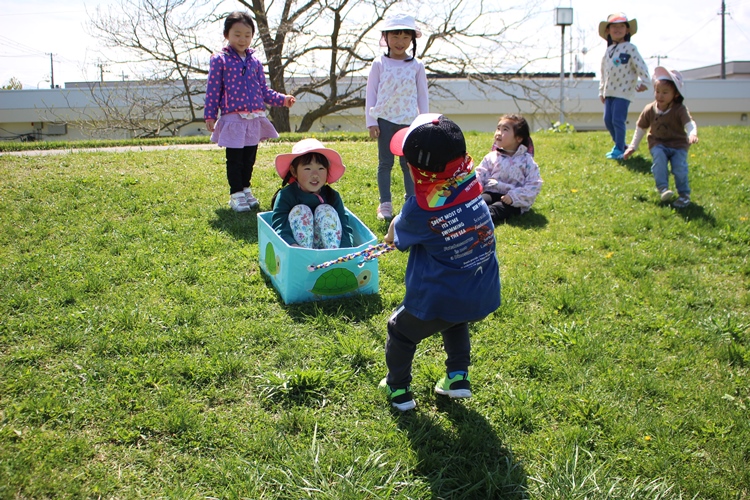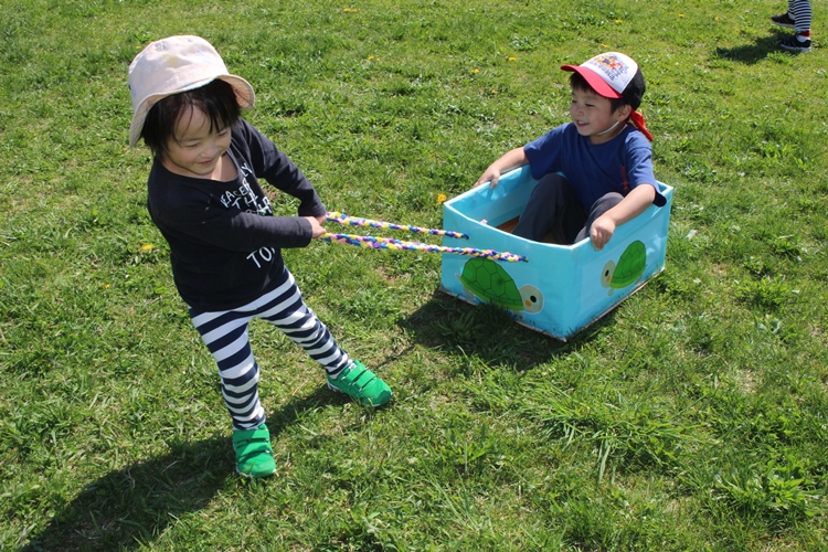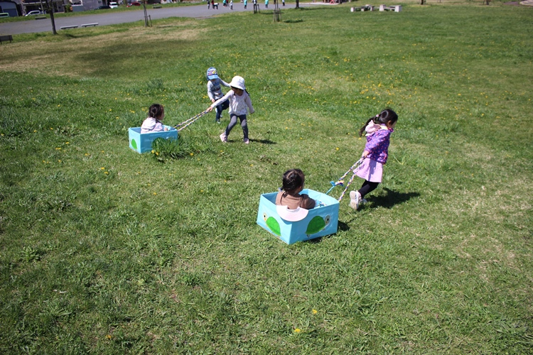 みんなで順番に、そりを押したり引っ張ったりしながら、楽しく体を動かして遊べましたね😊