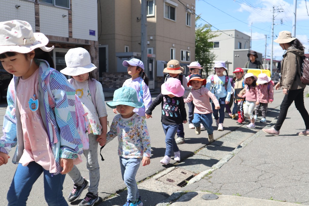 お兄さん、お姉さんと手をつないでしゅっぱーつ✊