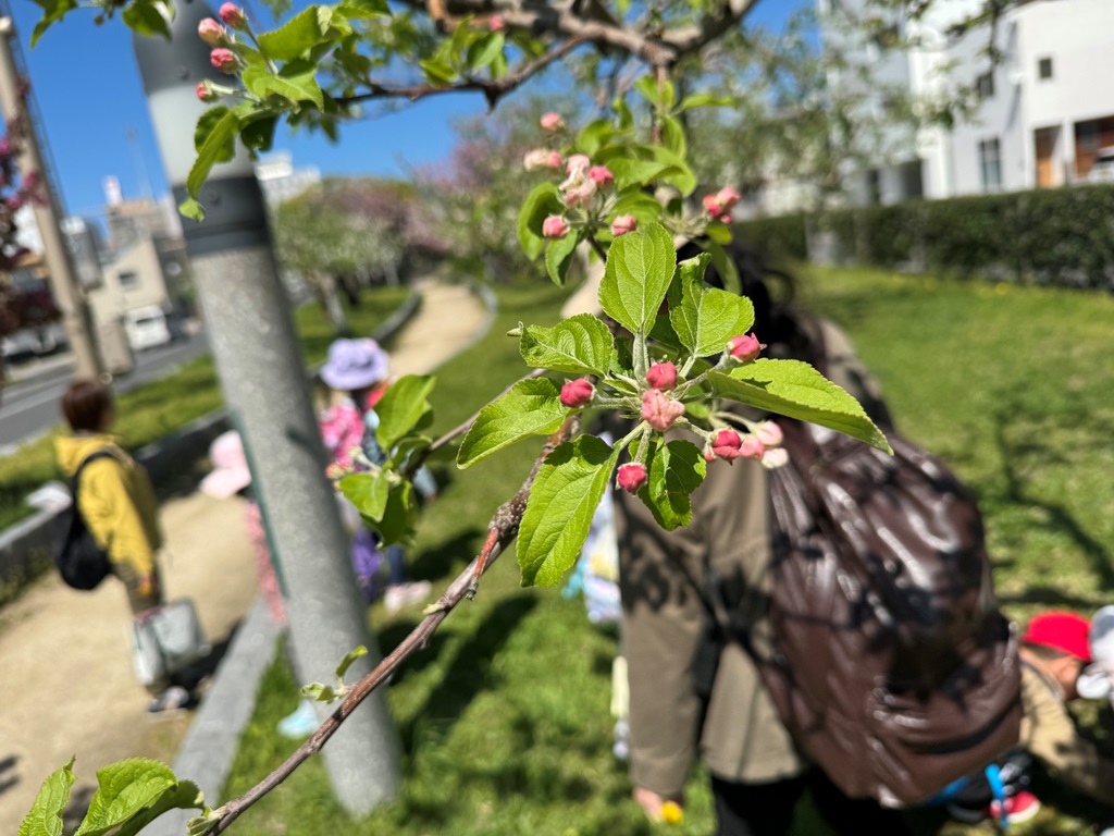 つぼみは濃いピンクですが咲くと白っぽくなるんだね😲