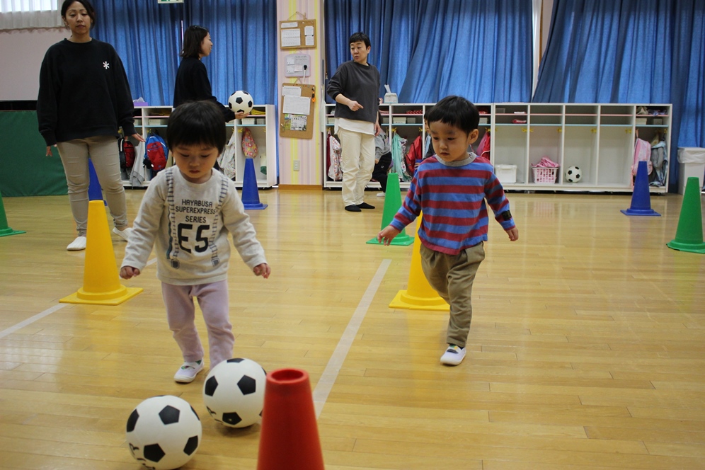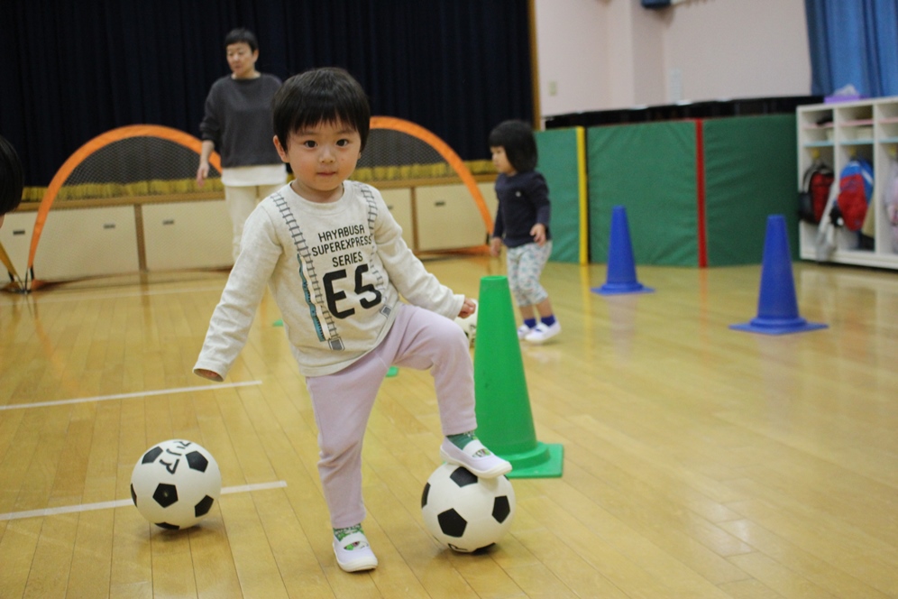 コーンに当たらないように上手にできるかな❓⚽