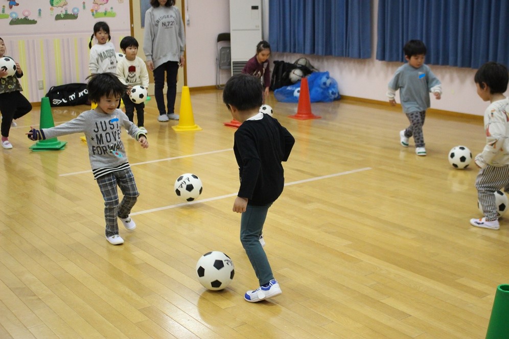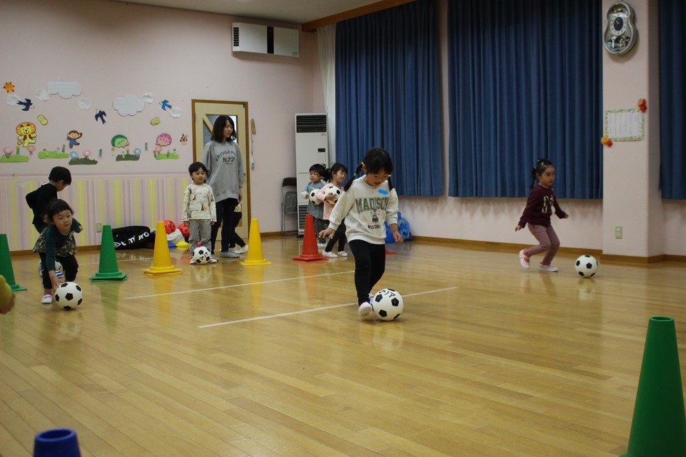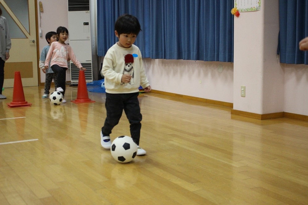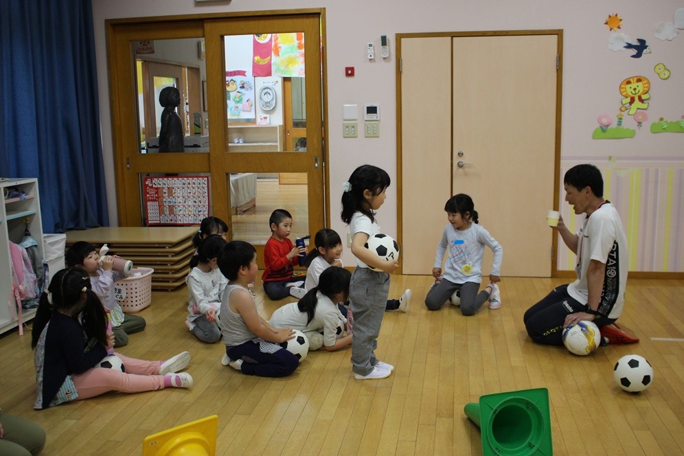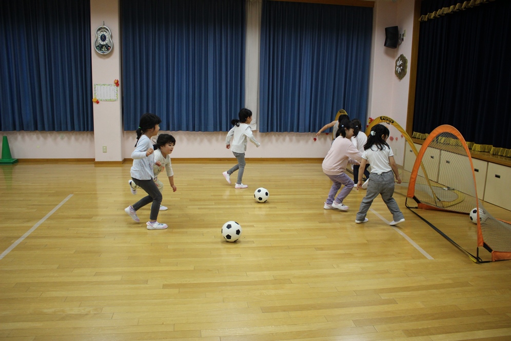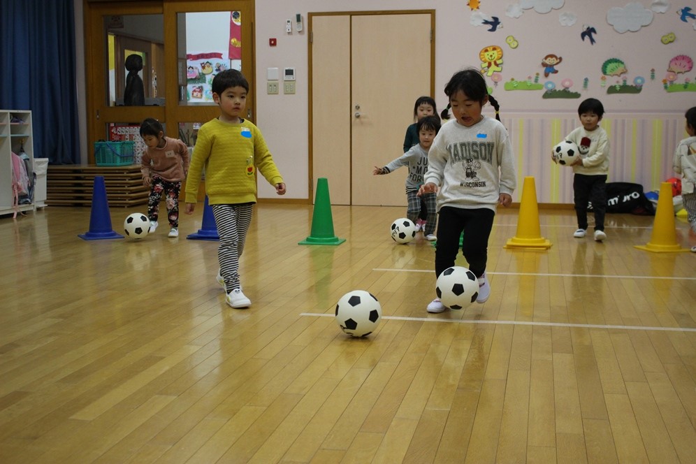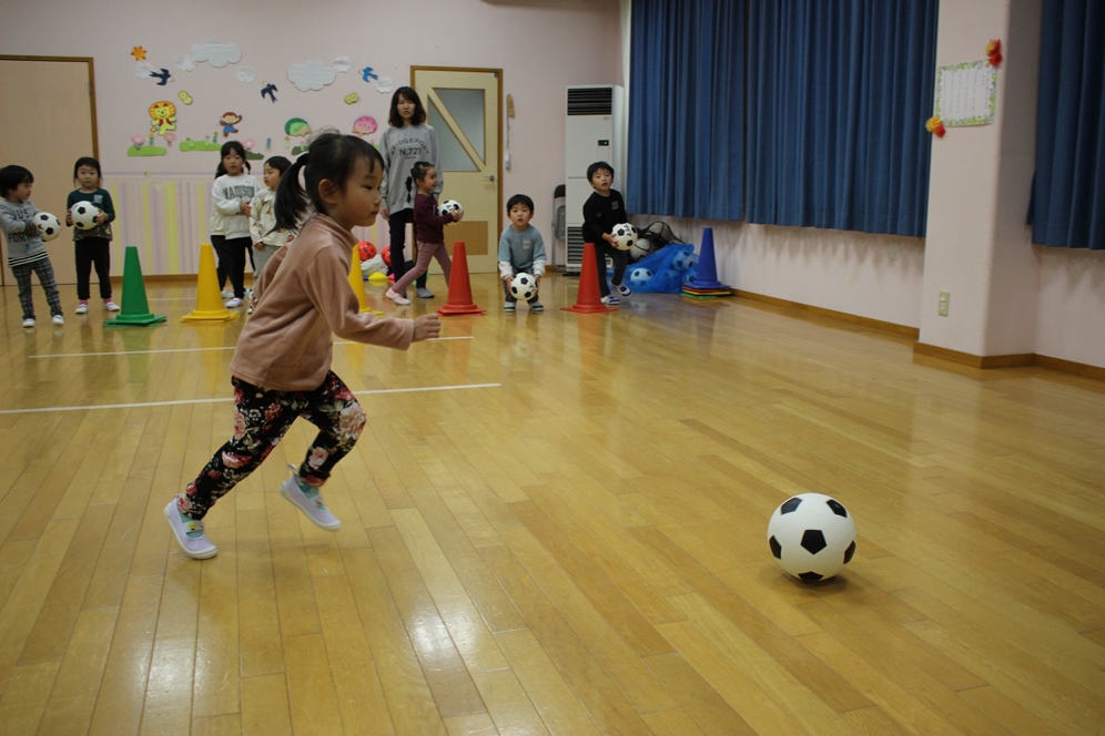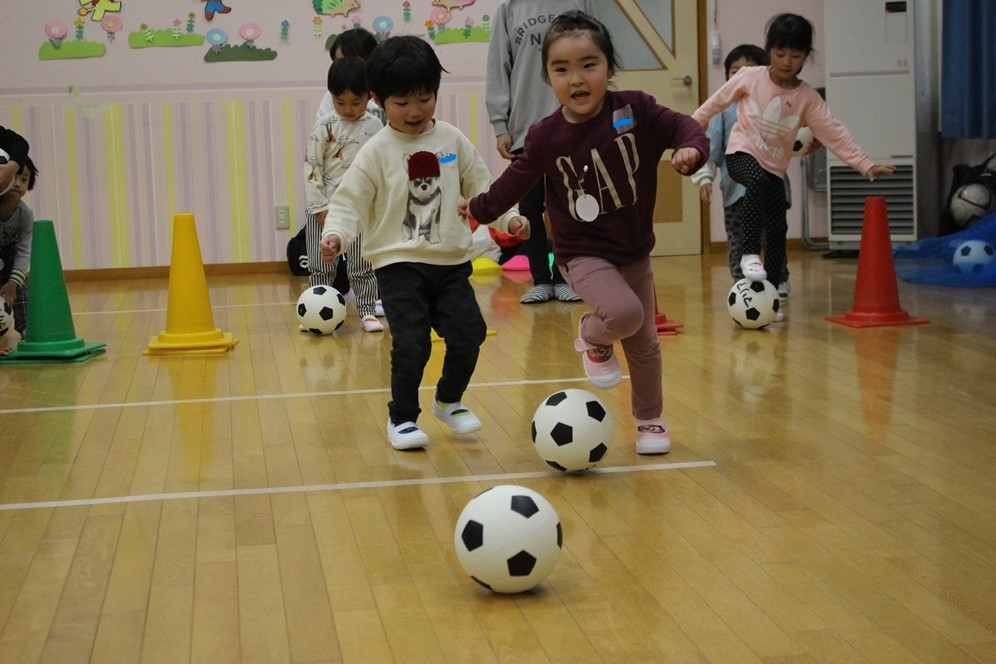 学期に一回、全園児で行なわれるサッカー教室⚽