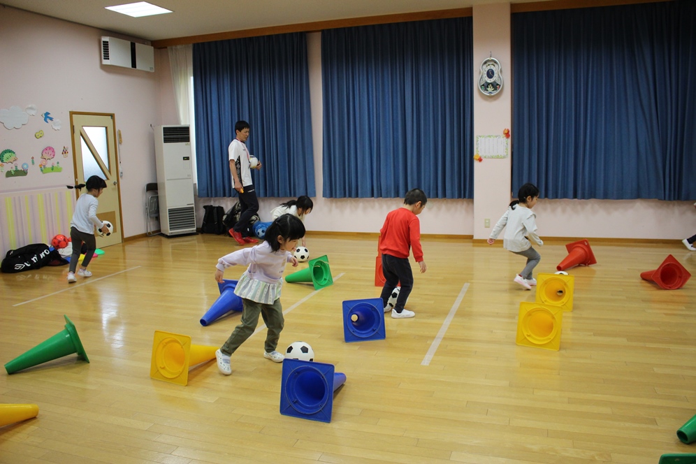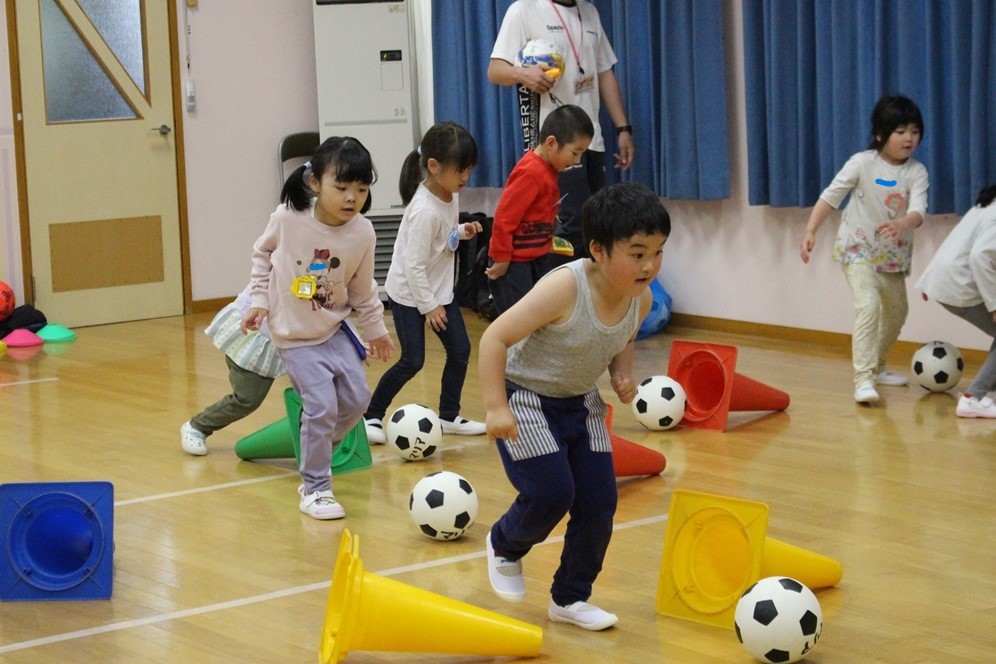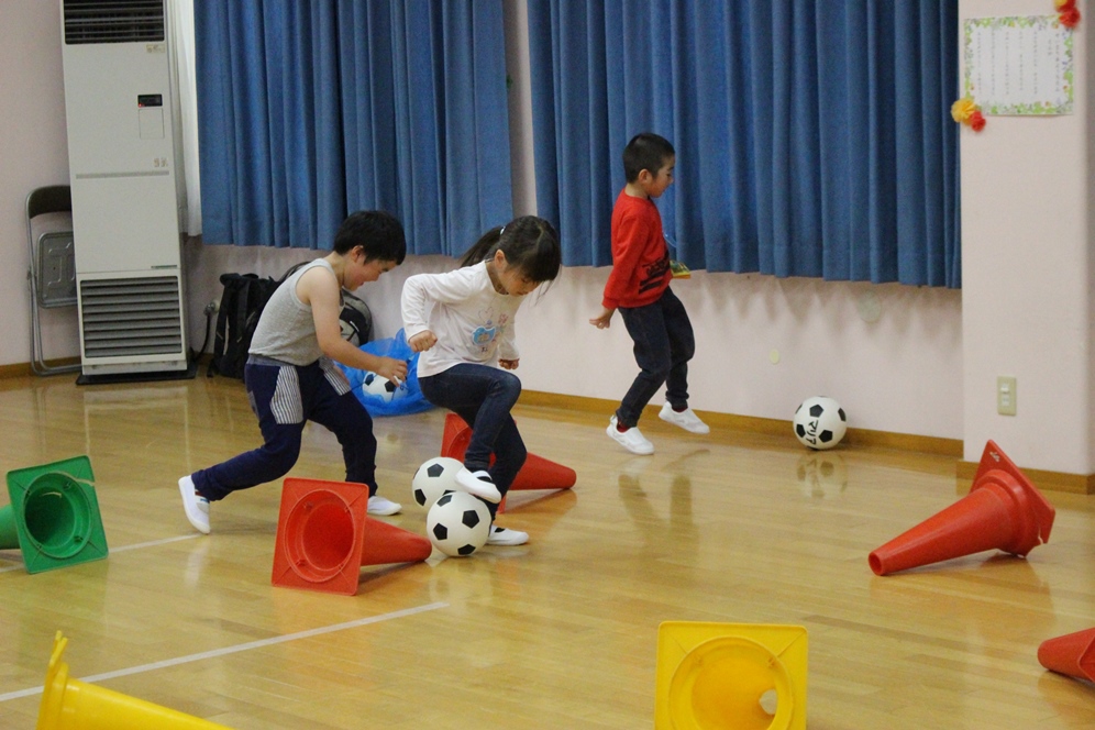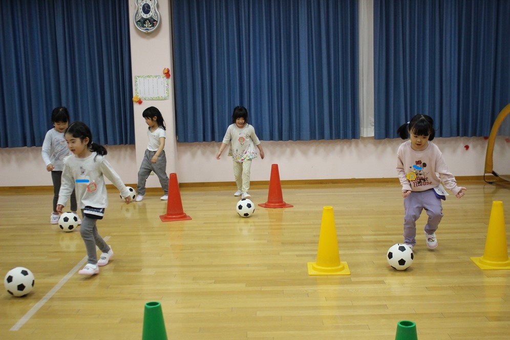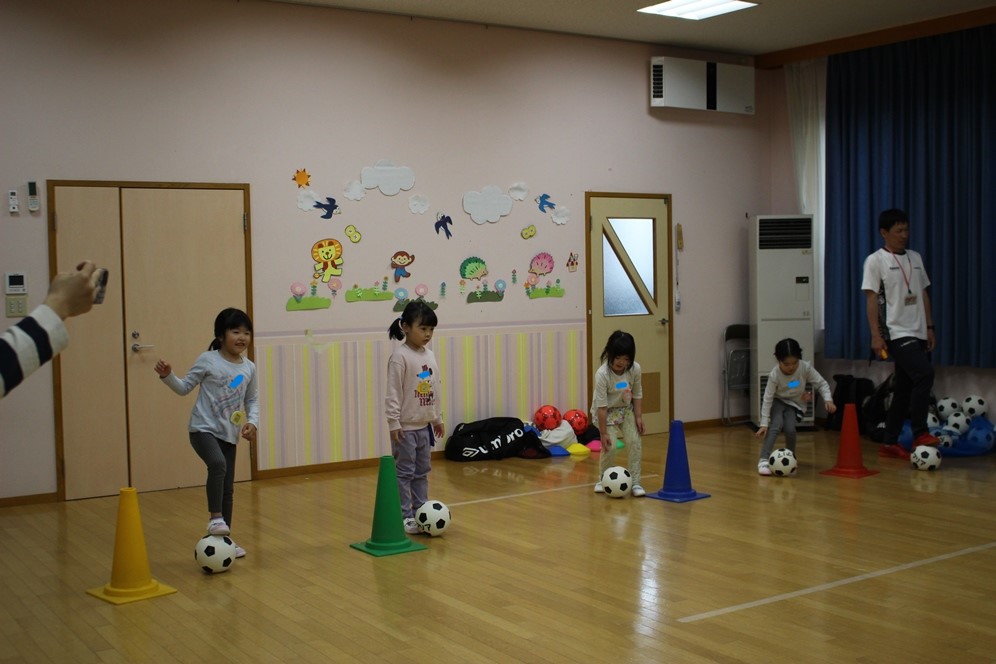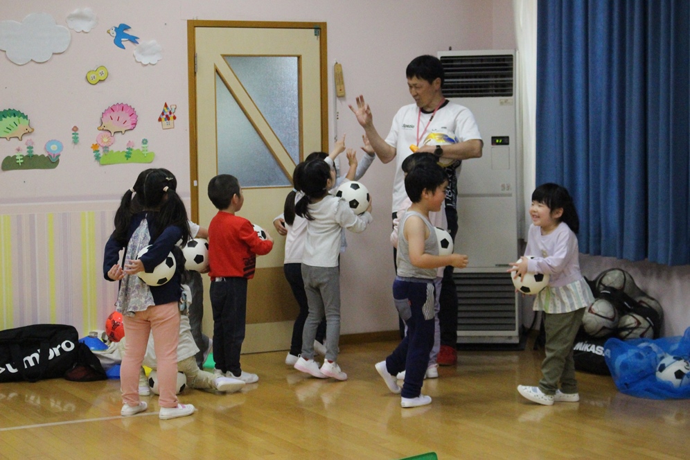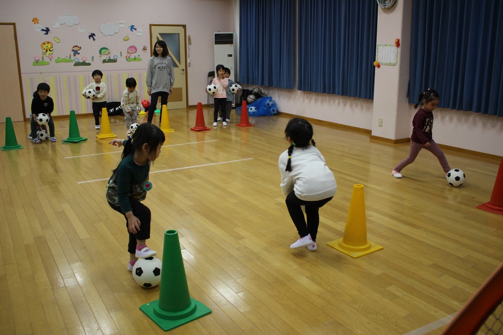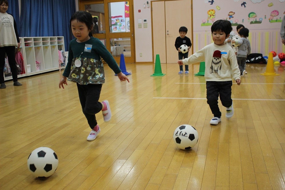 学期に一回、全園児で行なわれるサッカー教室⚽