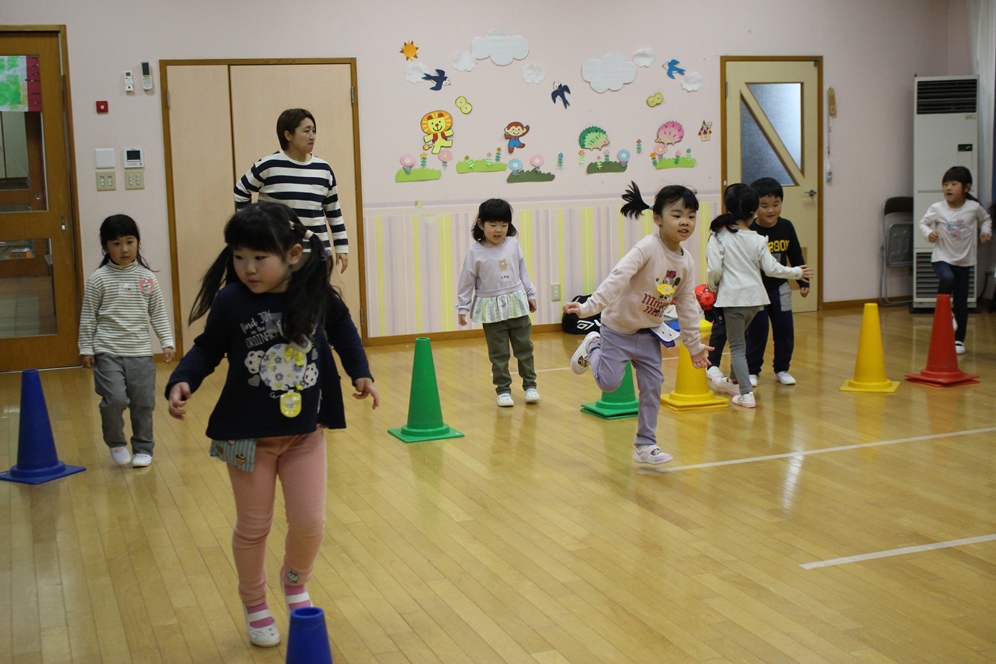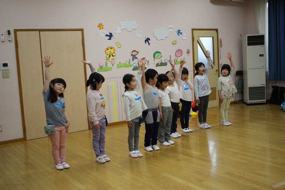 今回は、雨天の為幼稚園のホールで行ないました🎵