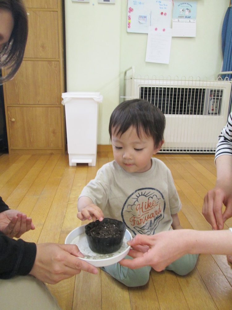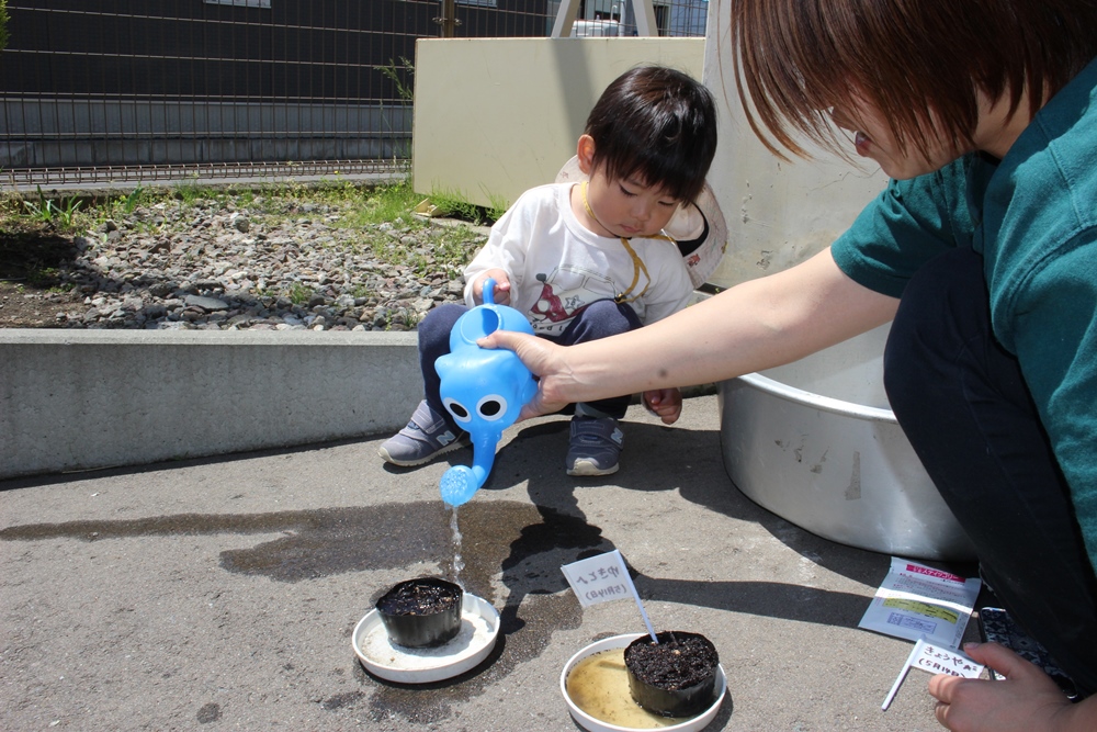 《たまご組では収穫をたくさん楽しめるように、トマトとスティッコリーにしました🍅🥦園として初めて育てるスティッコリー♬種から上手に育てられるかな❓😋お水をあげて成長や収穫を一緒に楽しみたいと思います😌💗》