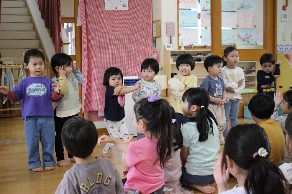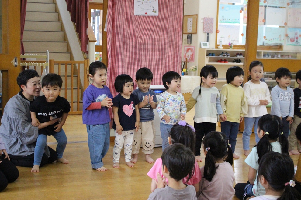 ♪チューリップ🌷と♪ありさんのおはなし🐜のお歌を大きな声でかわいく歌ってくれた、ひよこさんでした🐤👏