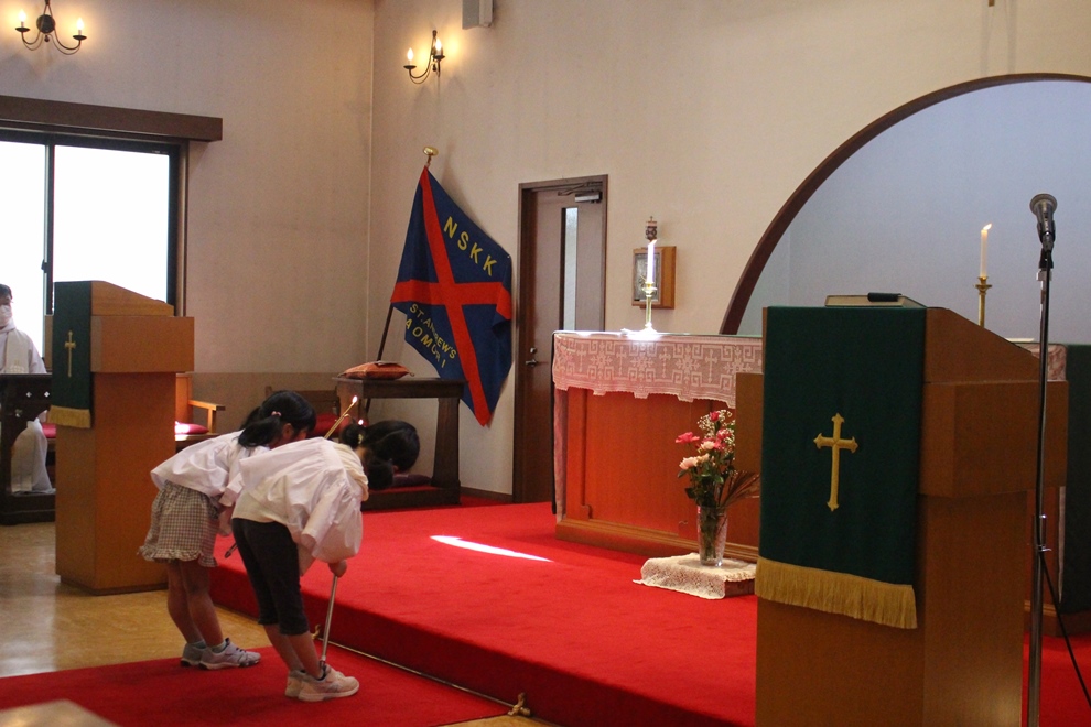 まずは、教会で心静かにみんなでお祈りをします✨