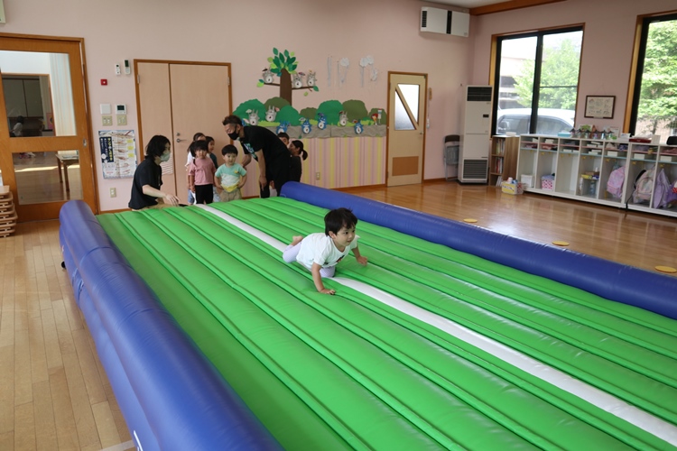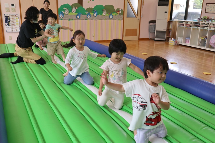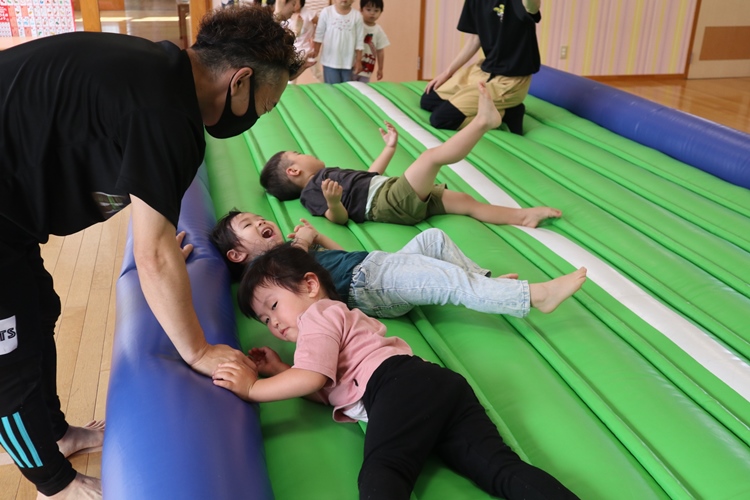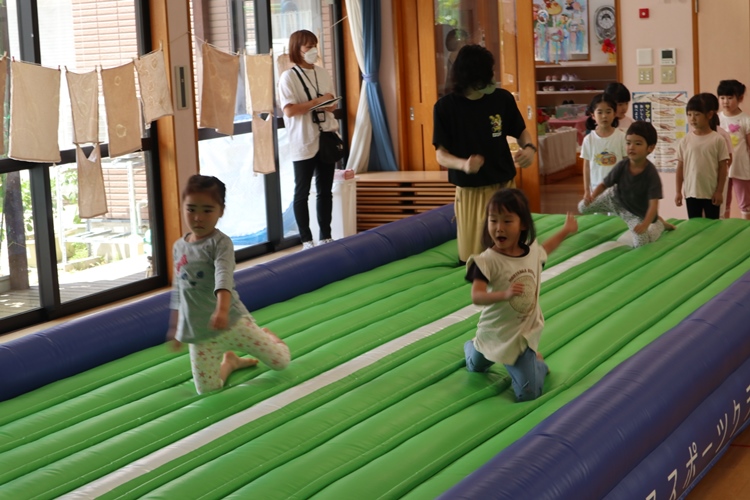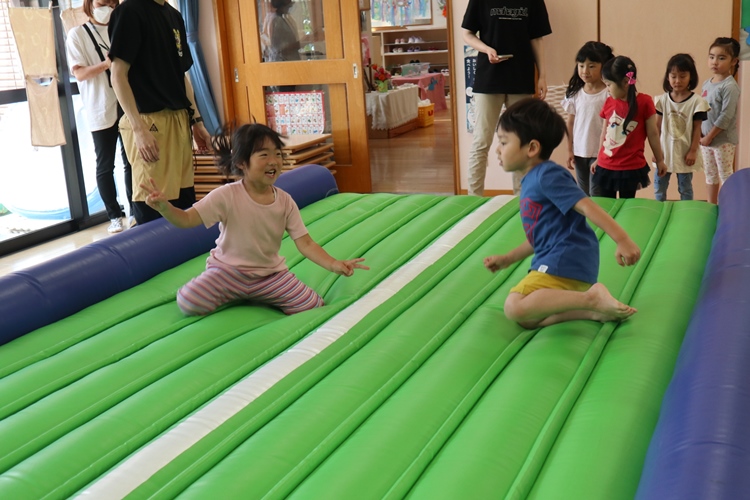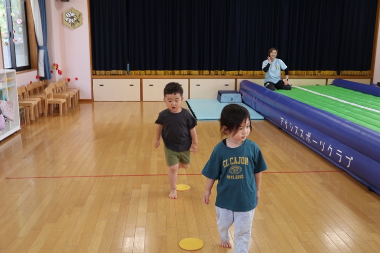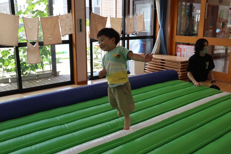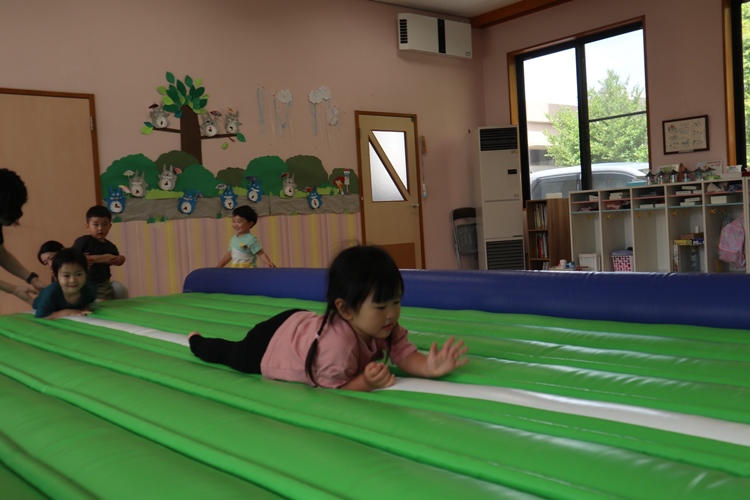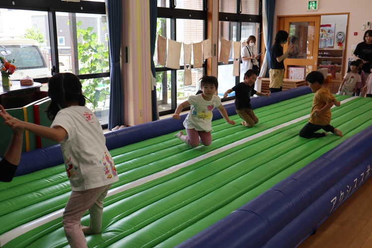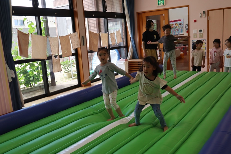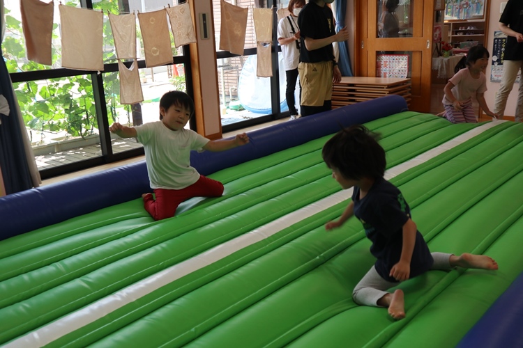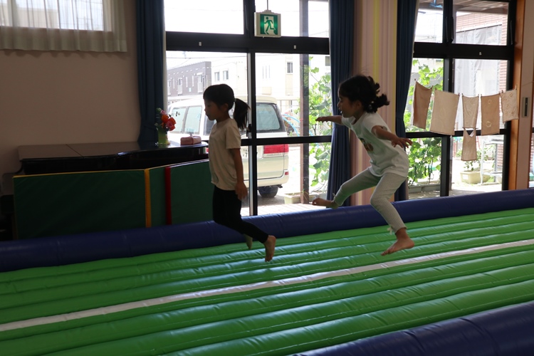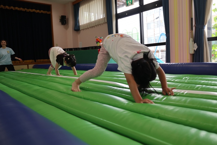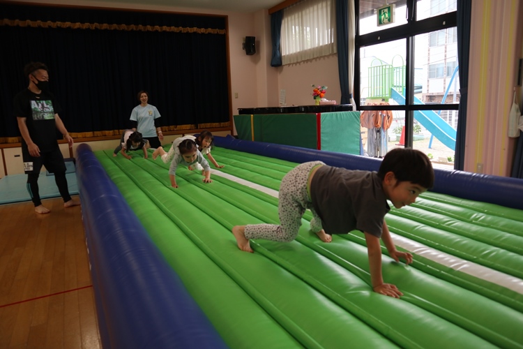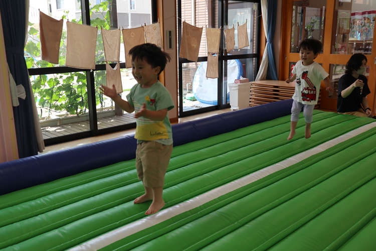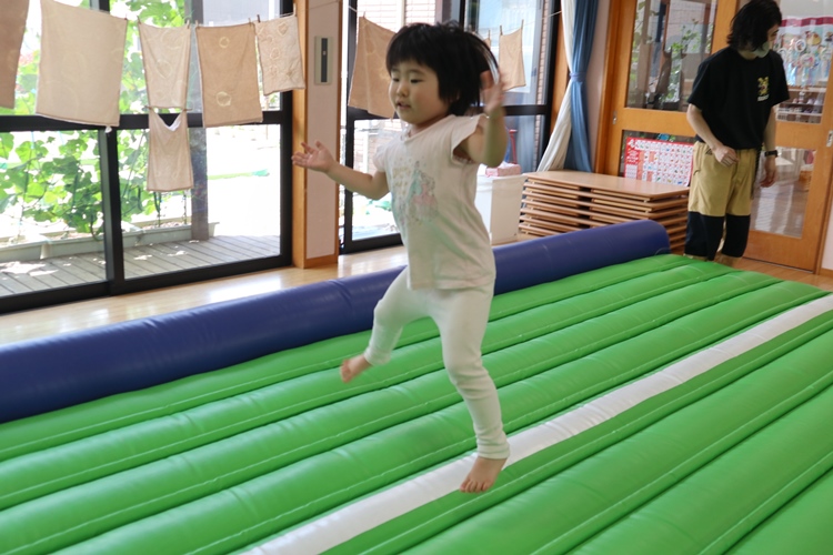 今日は体操の先生が来てくださり、トランポリンの体操教室がありました😊