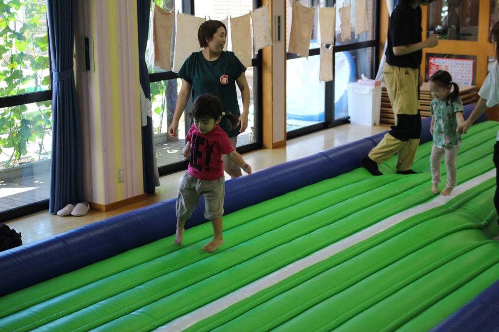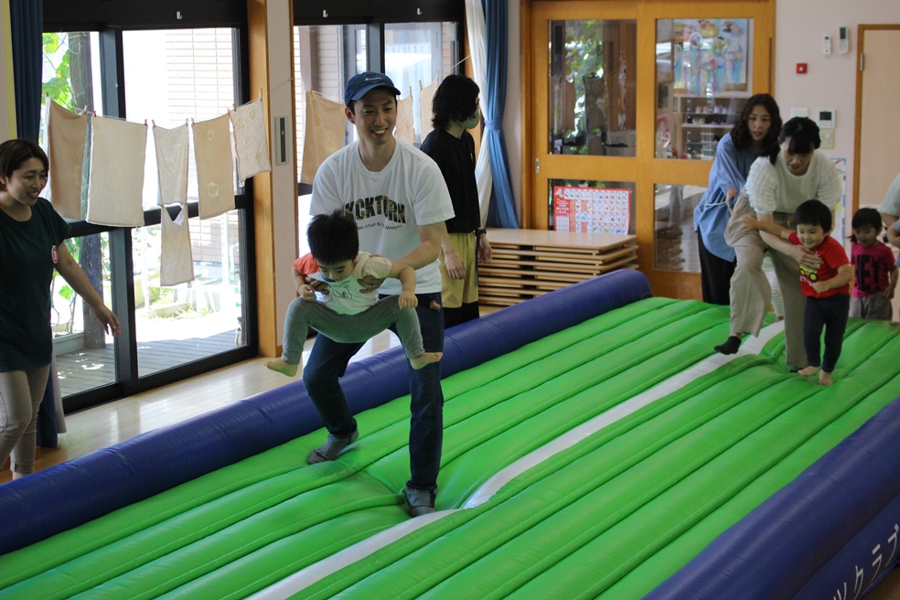 しぼんでいたエアートランポリンが、みるみるうちに膨らんで・・・