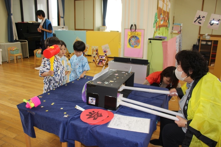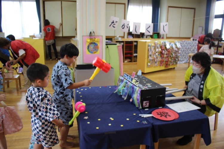 前の日は、夏祭りでどんなお楽しみのコーナーがあるのか?