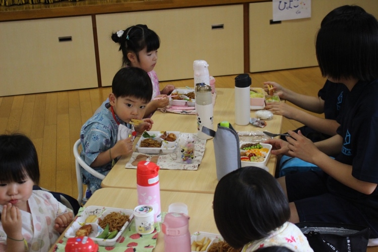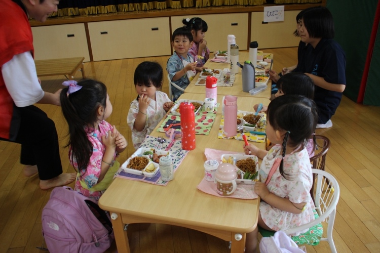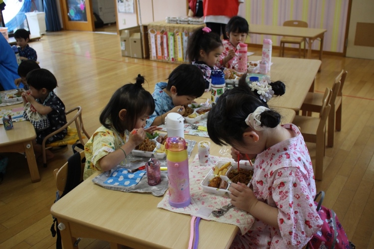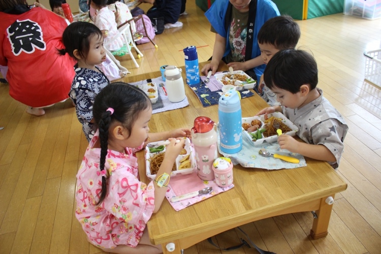 たくさん遊んだ後は、お祭りメニューの給食をいただきましょう🍴